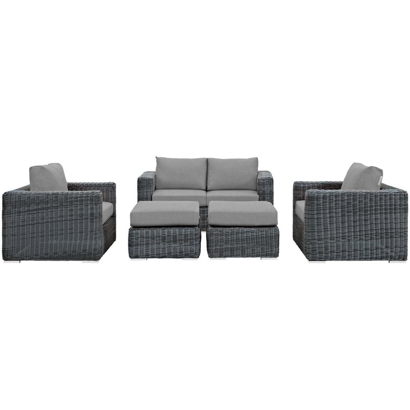 Modway Summon 5 Piece Outdoor Patio Sectional Set With Sunbrella Cushions In Canvas Gray