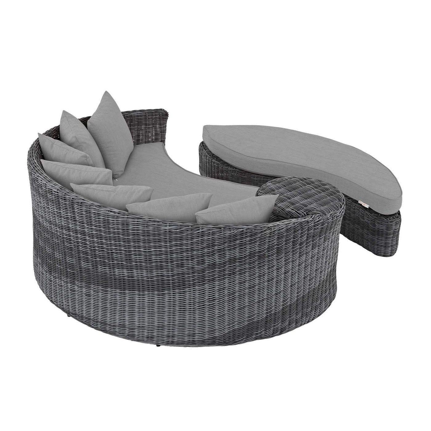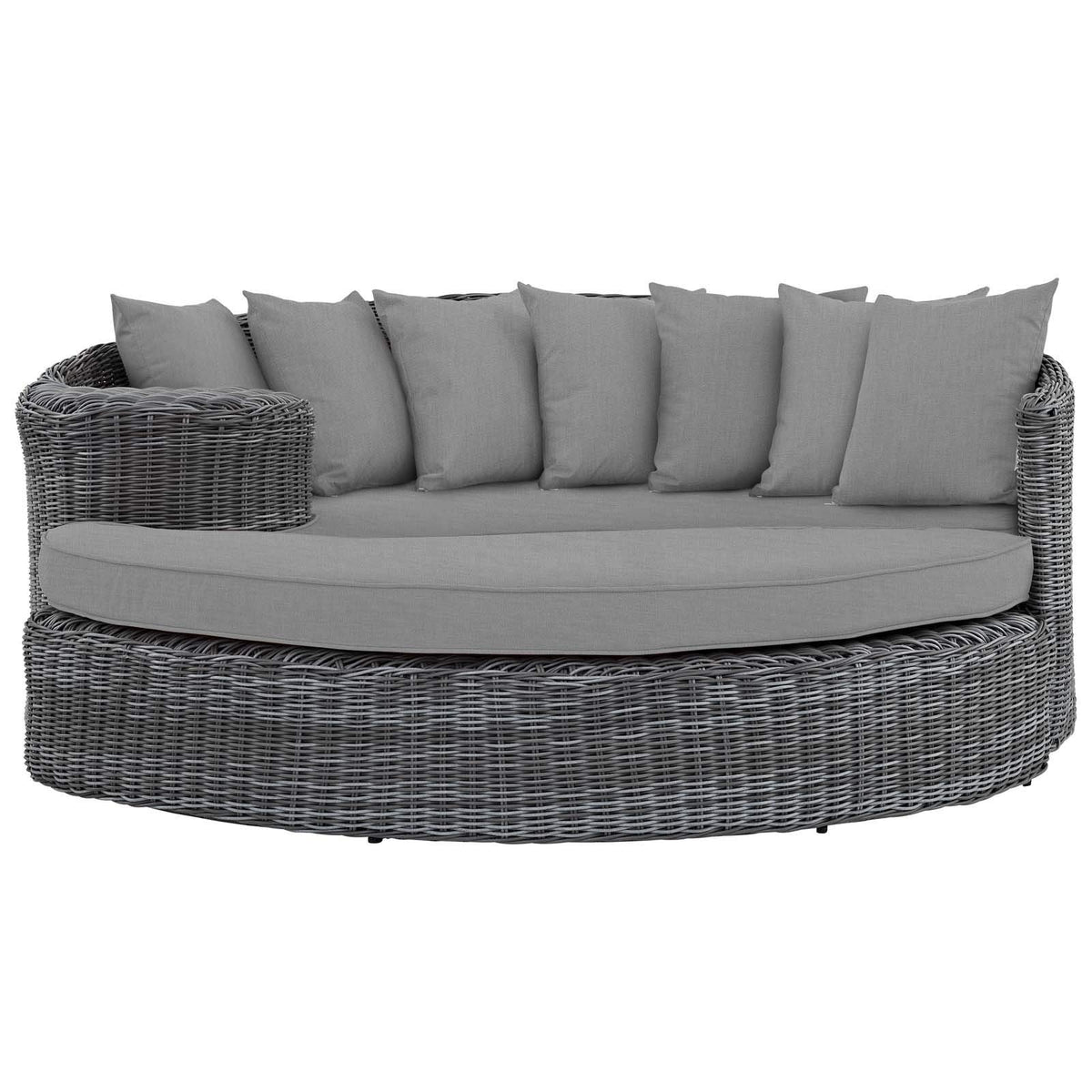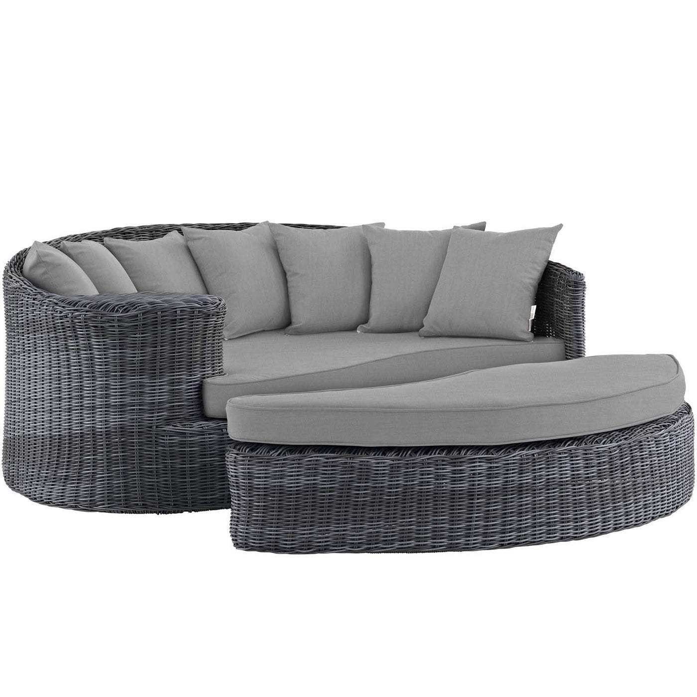 Modway Summon Wicker Rattan Aluminum Outdoor Patio Poolside Sectional Daybed with Sunbrella® Fabric Cushions in Canvas Gray