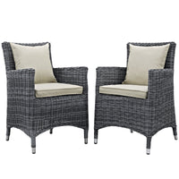 Modway Summon Wicker Rattan Aluminum Outdoor Patio Two Dining Arm Chairs With Sunbrella® Fabric Cushions In Antique Canvas Beige
