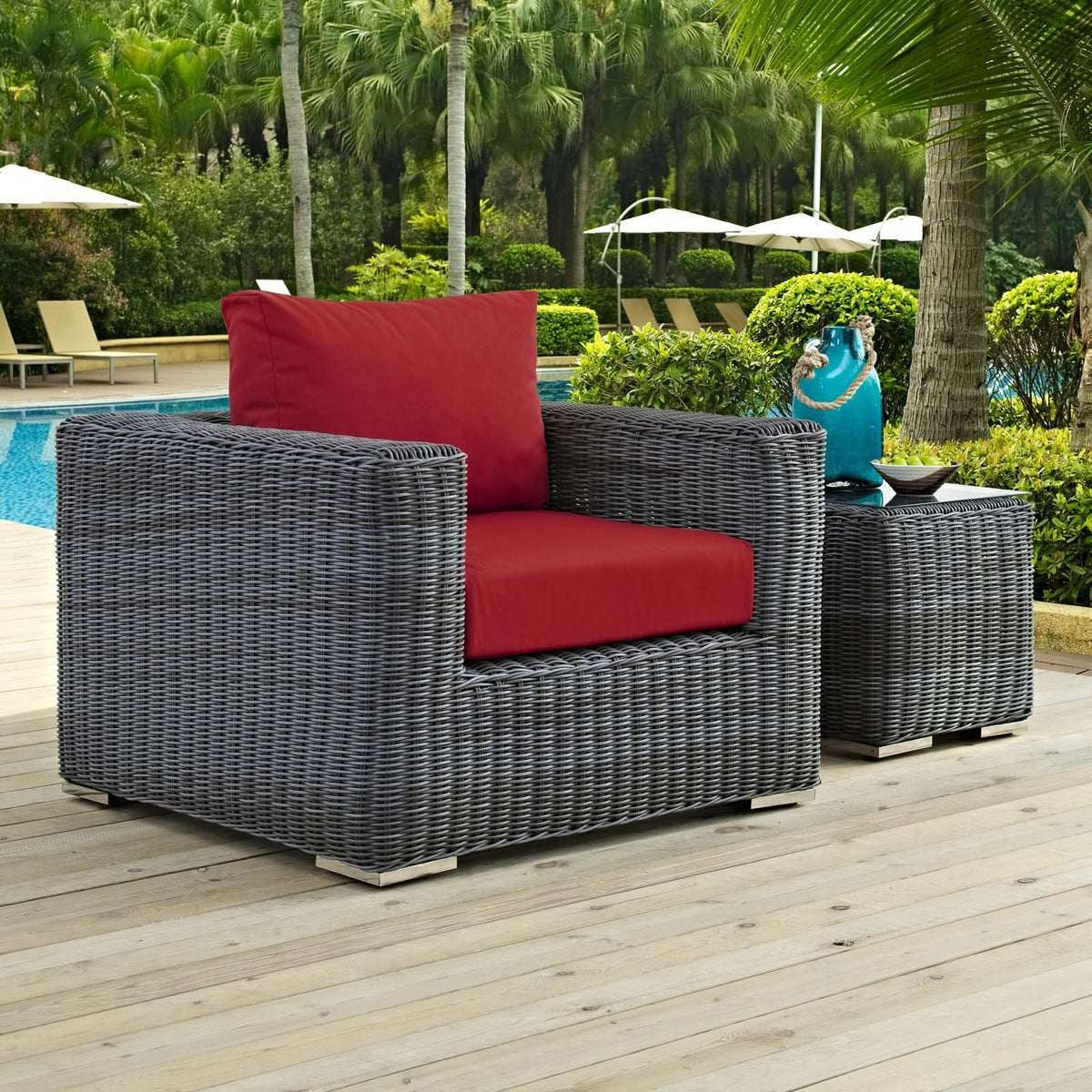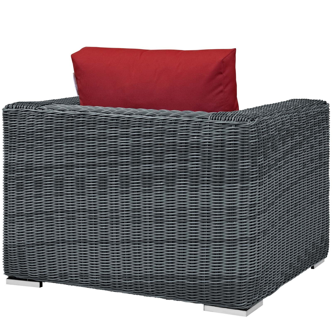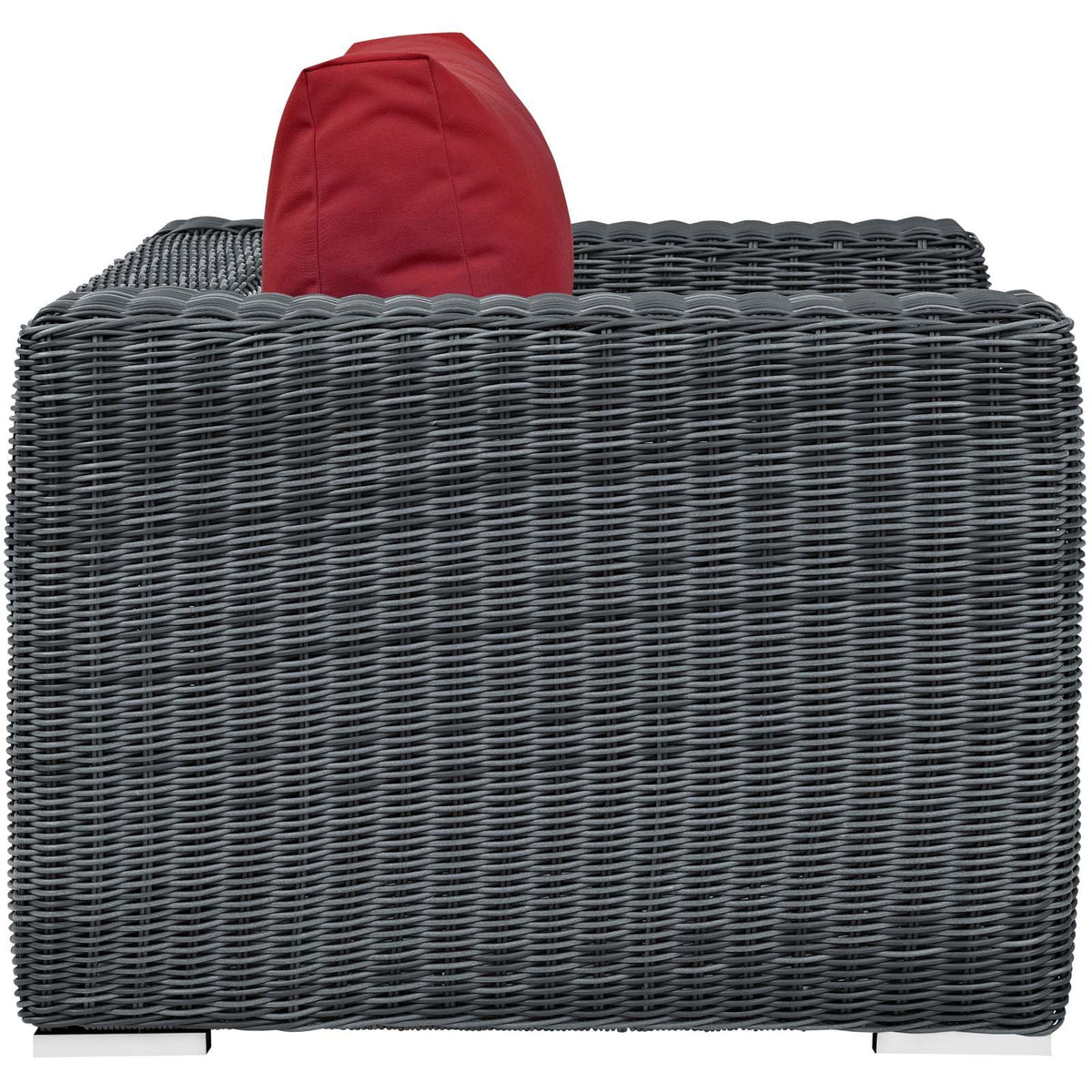 Modway Summon Wicker Rattan Outdoor Patio Sunbrella Armchair In Canvas Red
