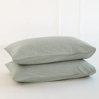 Moomee Bedding Pillowcases Pack Of 2 100% Washed Cotton Linen Like Textured Breathable Durable Soft Comfy (Green, King)