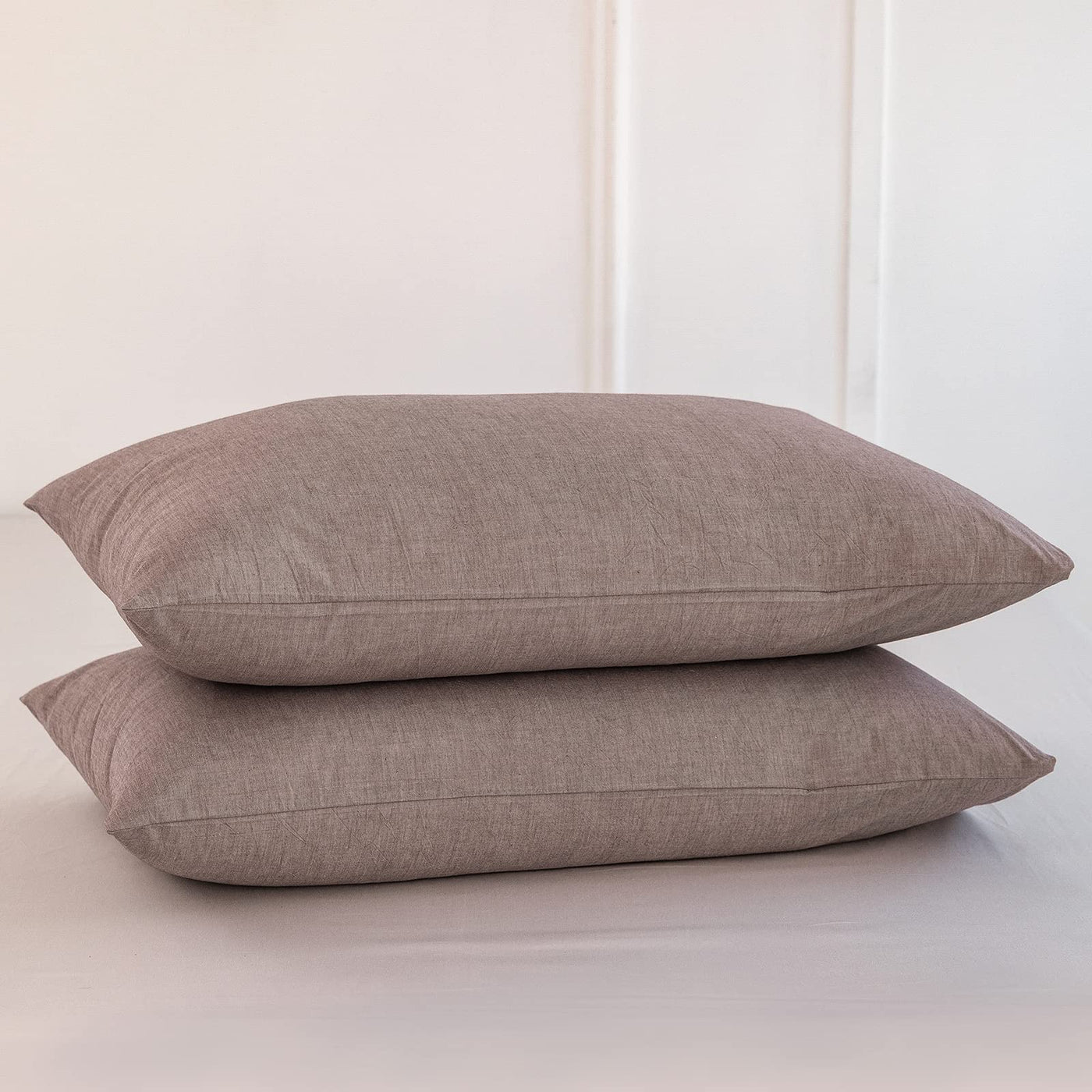 Moomee Bedding Pillowcases Pack Of 2 100% Washed Cotton Linen Like Textured Breathable Durable Soft Comfy (Mauve Brown, Standard