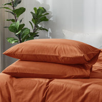 Moomee Bedding Pillowcases Pack Of 2 100% Washed Cotton Linen Like Textured Breathable Durable Soft Comfy (Rust Brown, King)