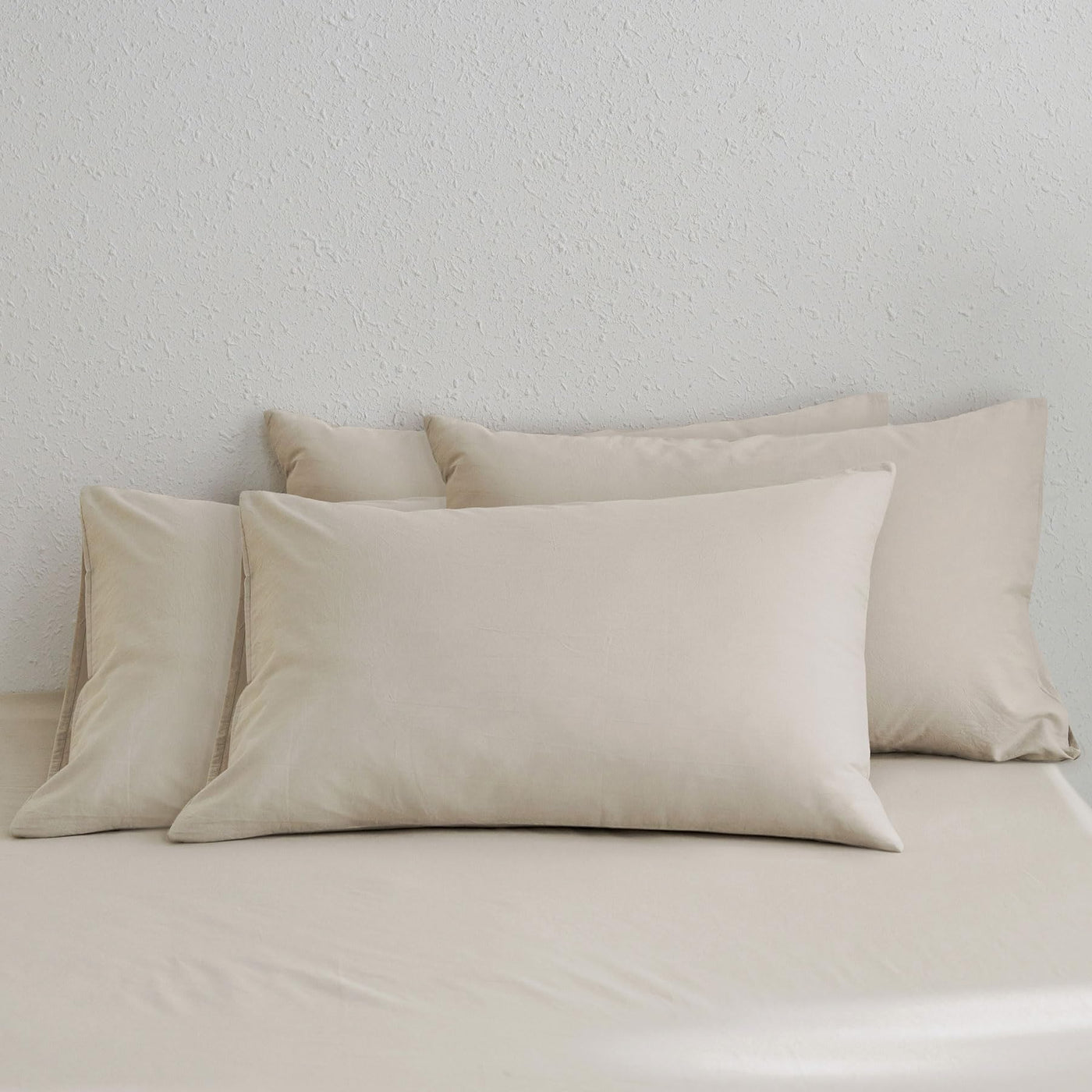 Moomee Bedding Pillowcases Pack Of 4 100% Washed Cotton Linen Like Textured Breathable Durable Soft Comfy (Cream Grey, Queen)