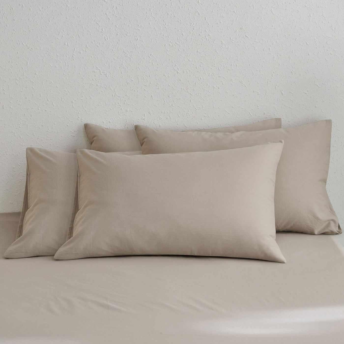 Moomee Bedding Pillowcases Pack Of 4 100% Washed Cotton Linen Like Textured Breathable Durable Soft Comfy (Tannish Linen Grey, Q