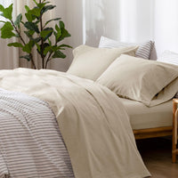 Moomee Bedding Sheet Set 100% Washed Cotton Linen Like Textured Breathable Durable Soft Comfy (Almond Milk Grey, King)