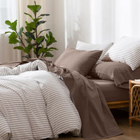 Moomee Bedding Sheet Set 100% Washed Cotton Linen Like Textured Breathable Durable Soft Comfy (Brown, Queen)