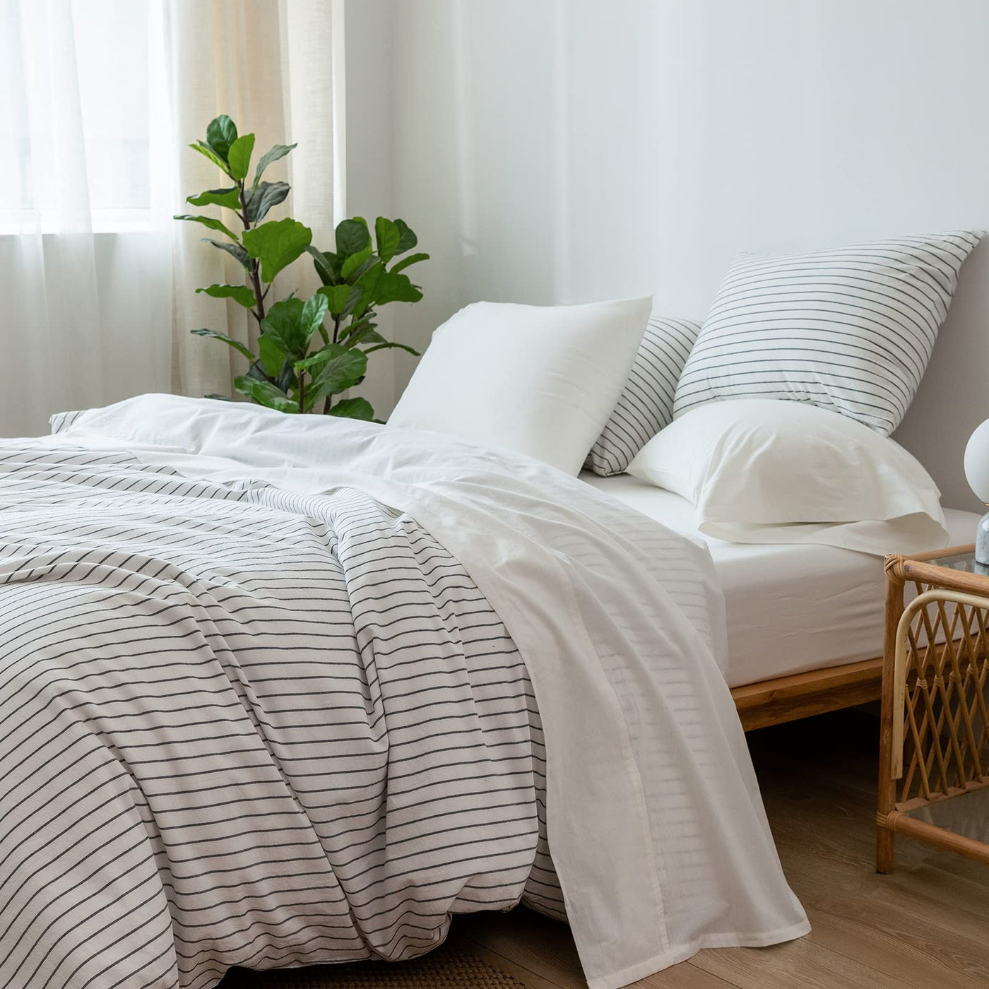 Q: What features make the MooMee sheets comfortable for year-round use?A: The MooMee sheets are designed to be breathable, keeping you cool in the summer and warm in the winter. Their unique washed cotton texture offers a lived-in feel that enhances comfort and relaxation.