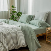 Moomee Bedding Sheet Set 100% Washed Cotton Linen Like Textured Breathable Durable Soft Comfy (Sage Green, Twin)