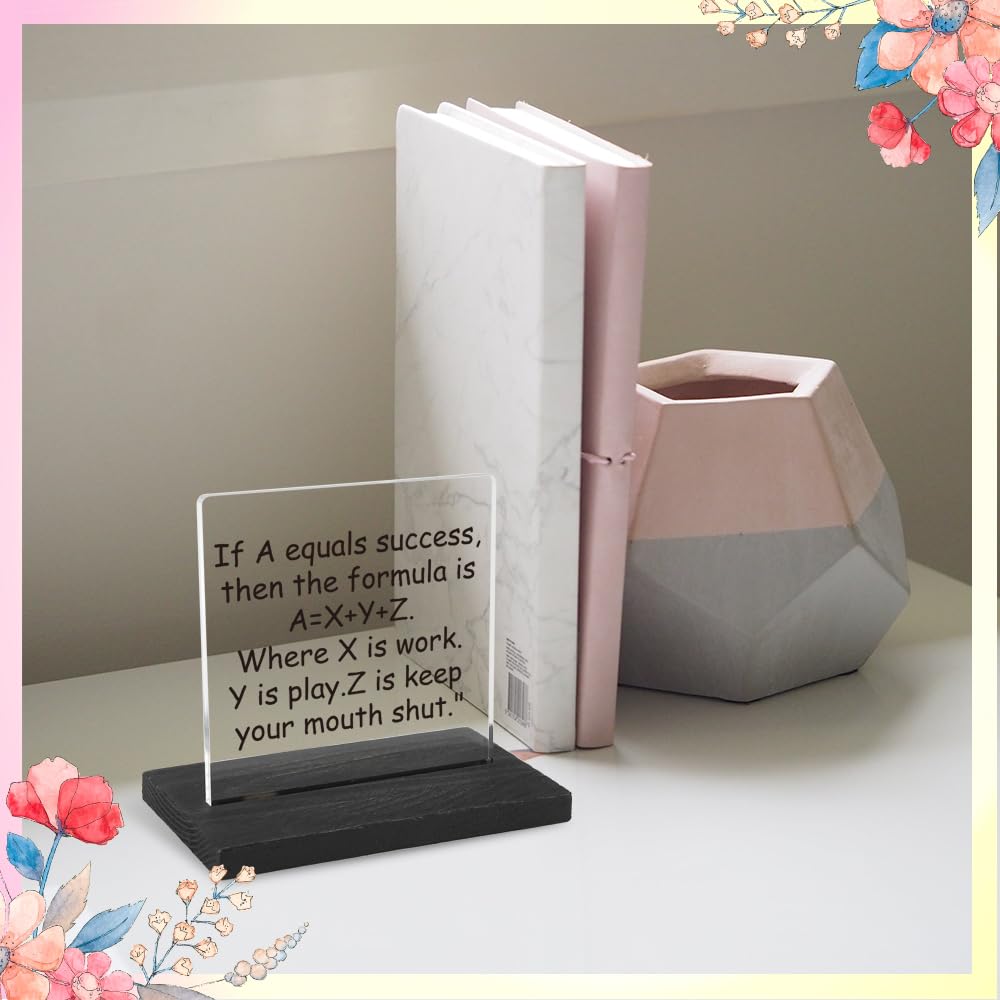 Q: What material is the Motivational Office Desk Decor made of?A: The Motivational Office Desk Decor is made of high-quality acrylic, which is known for its durability and transparency, making it a perfect choice for decorative items.