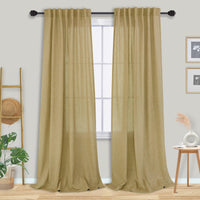 Mrs.Naturall Light Brown Curtains 84 Inches Long For Living Room Set 2 Panels, Back Tab Light Filtering Burlap Tan Linen Semi Sh