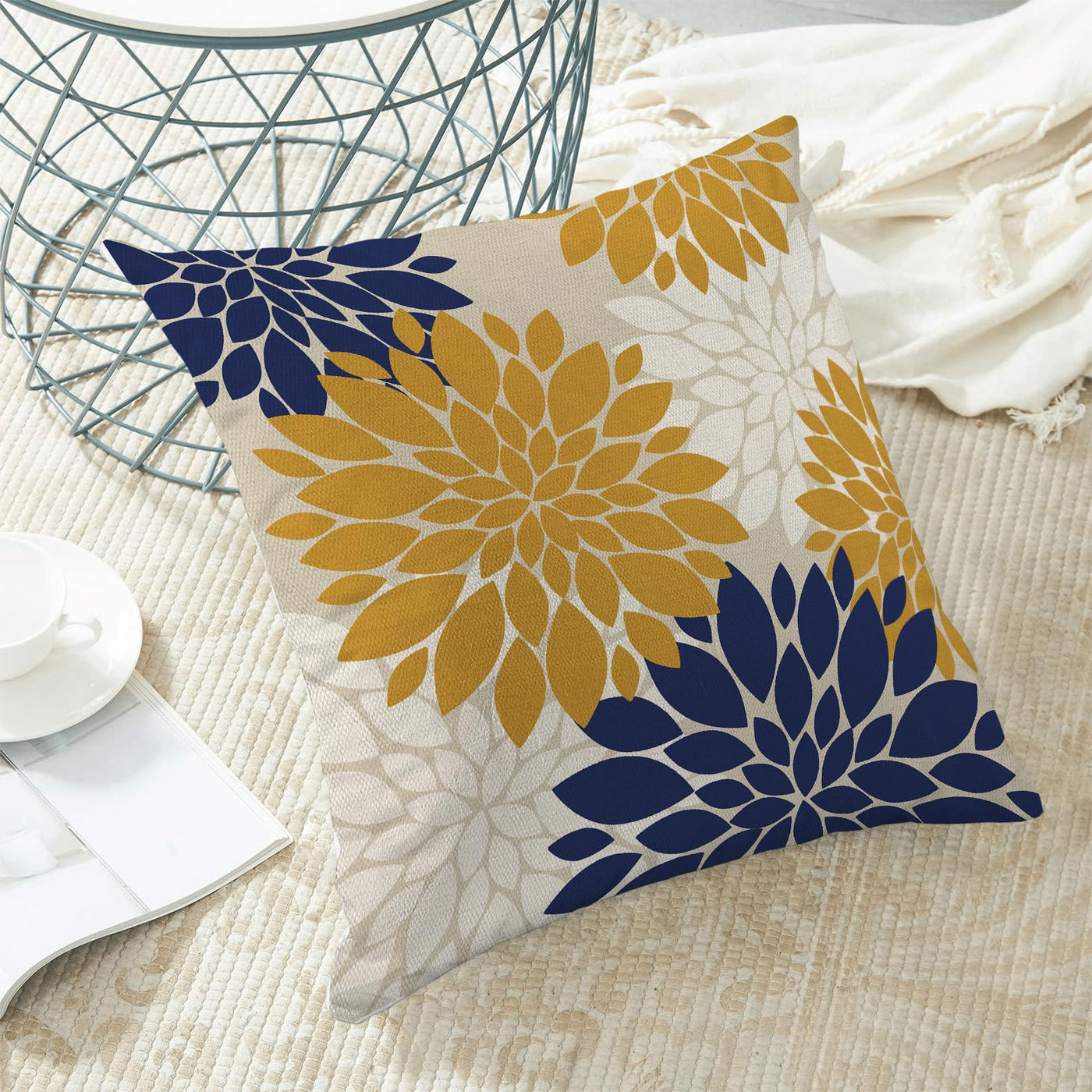 Cxmeifly Is A Comprehensive Home Textile Company That Integrates Design, Production, And Sales. We Always Insist On Creating Our Products With High-Quality Materials And Craftsmanship, Which Provides You With A Variety Of Styles, Colors, High-Quality Products To Meet Your Diverse Needs. Product Details: The Mustard Yellow White Pillow Cover Is Made Of High Quality Polyester Linen Material And Is Very Durable And Soft. This Modern Geometry Pillow Cover Has An Invisible Zipper Which Improves The Appearance And Provides Easy Insertion And Removal. We Designed The Navy Blue White Colored Dahlia Flower Pillow Cover To Look And Function Better Than Any Other'S! Thanks To High Temperature Cutting Technology, Our Dahlia Floral Pattern Decor Pillow Covers Are Softer Than The Usual Ones, No Bleeding, Fading Or Fraying Issue. We Have Strong Hidden Zipper, Dont' Worry About Tearing. Made With Shrink Resistant Fabric. Stays The Same And As New, After Every Wash. Machine Wash Cold Separately, Gently Cycle Only, No Bleach, Tumble Dry Low, Do Not Iron. Pillow Cover Only, No Insert Or Filler