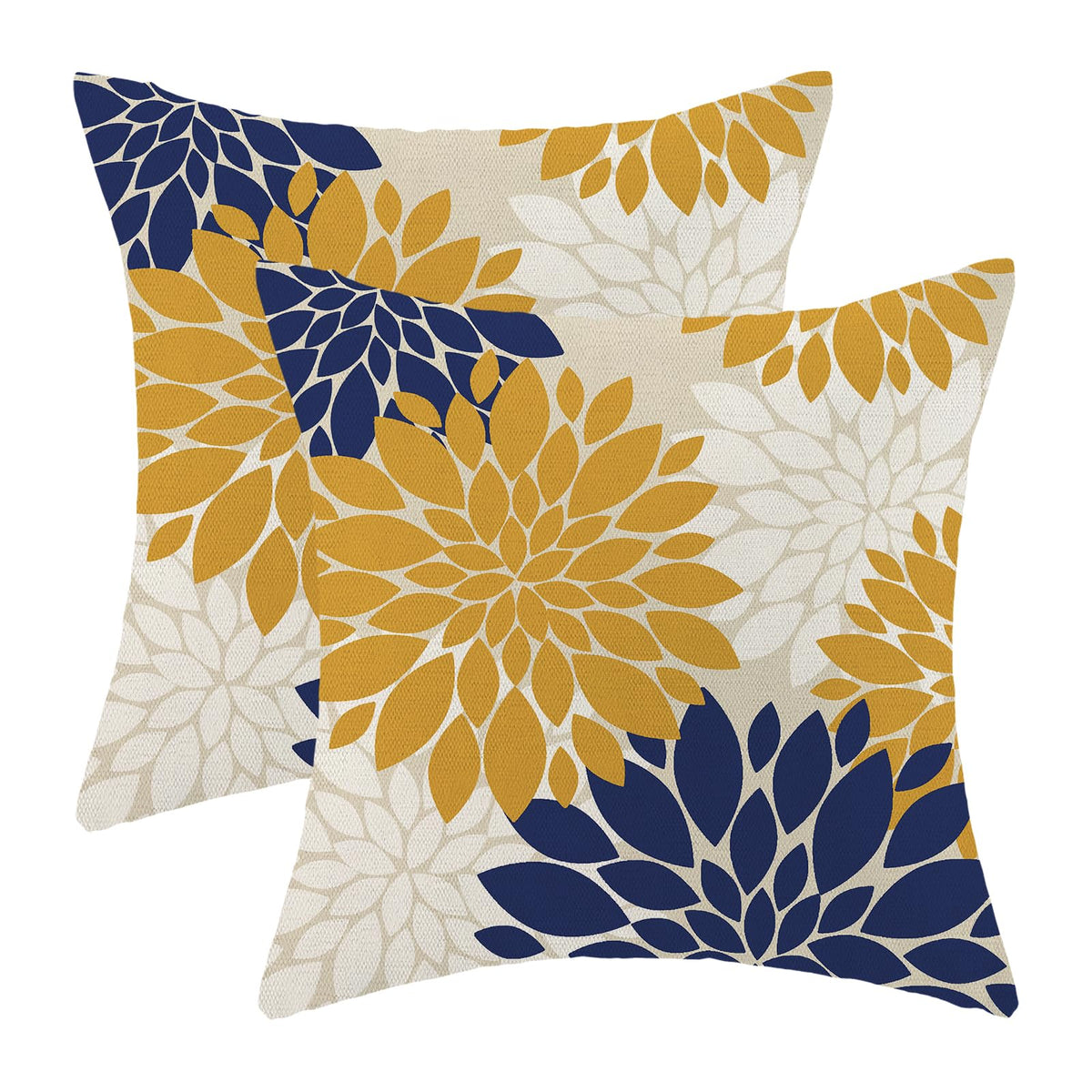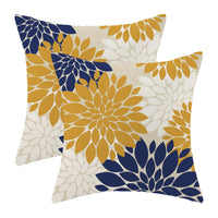 Mustard Yellow Navy Blue Pillow Covers 18X18 Inch Set Of 2 White Dahlia Floral Decor Throw Pillows Summer Modern Geometry Flower