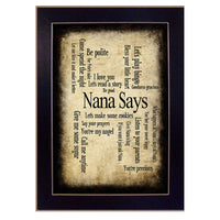 This nana says famous sentiments black framed print wall art will add a beautiful decorative accent to your decor. This print is a visual artistic expression that allows you to decorate your space in restyle. Reproduced for you on paper, this hanging accent will be a trendy and fashionable way to dress your walls. Adding this hanging wall art to make your room feel more finished and attractive. Instantly liven up your space with this art that dimension brings color to your space. Walls: 10' H x 14' W x 1' D