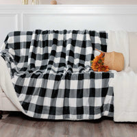 Nanpiper Sherpa King Size Blanket,Warm Fuzzy Checkered Blanket,Soft Fleece Plaid Blankets For Bed,Black Checks 90'X108'