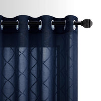 Navy Blue 52X90 Inch Length Grommet Diamond Linen Look Sheer Curtains