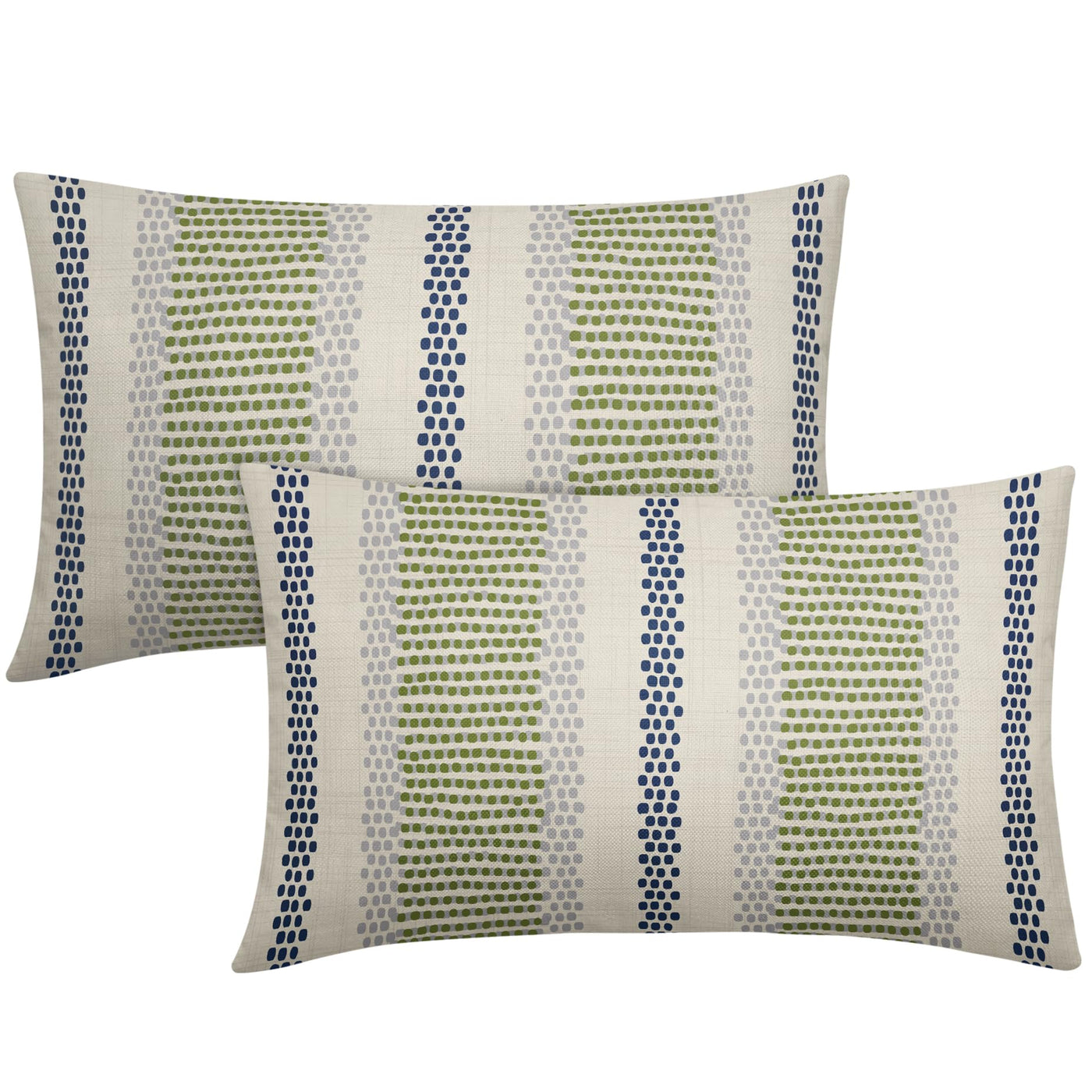 Navy Blue Lime Green Pillow Covers 12X20 Set Of 2 Grey Dot Print Striped Lumbar Rectangle Decorative Outdoor Pillowcases Boho Ru