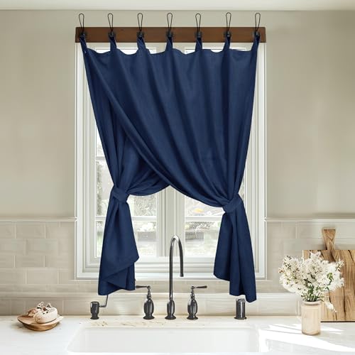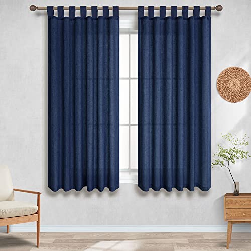 Navy Curtains 54 Inch Length For Boys Room Set Of 2 Panels Tab Top Light Airy Semi Sheer Linen Navy Blue Lightweight Curtains For Bedroom Game Gaming Room Playroom Accent Modern Nautical Decor 52X54