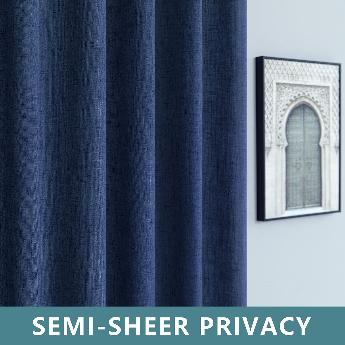 Natural Linen Texture & Semi-sheer: The woven polyester fabric with very natural, randomly placed little flecks of natural linen, creates a breezy linen texture, harmonizing natural sunlight and neutral color into brilliant room ambiance while enhancing privacy.