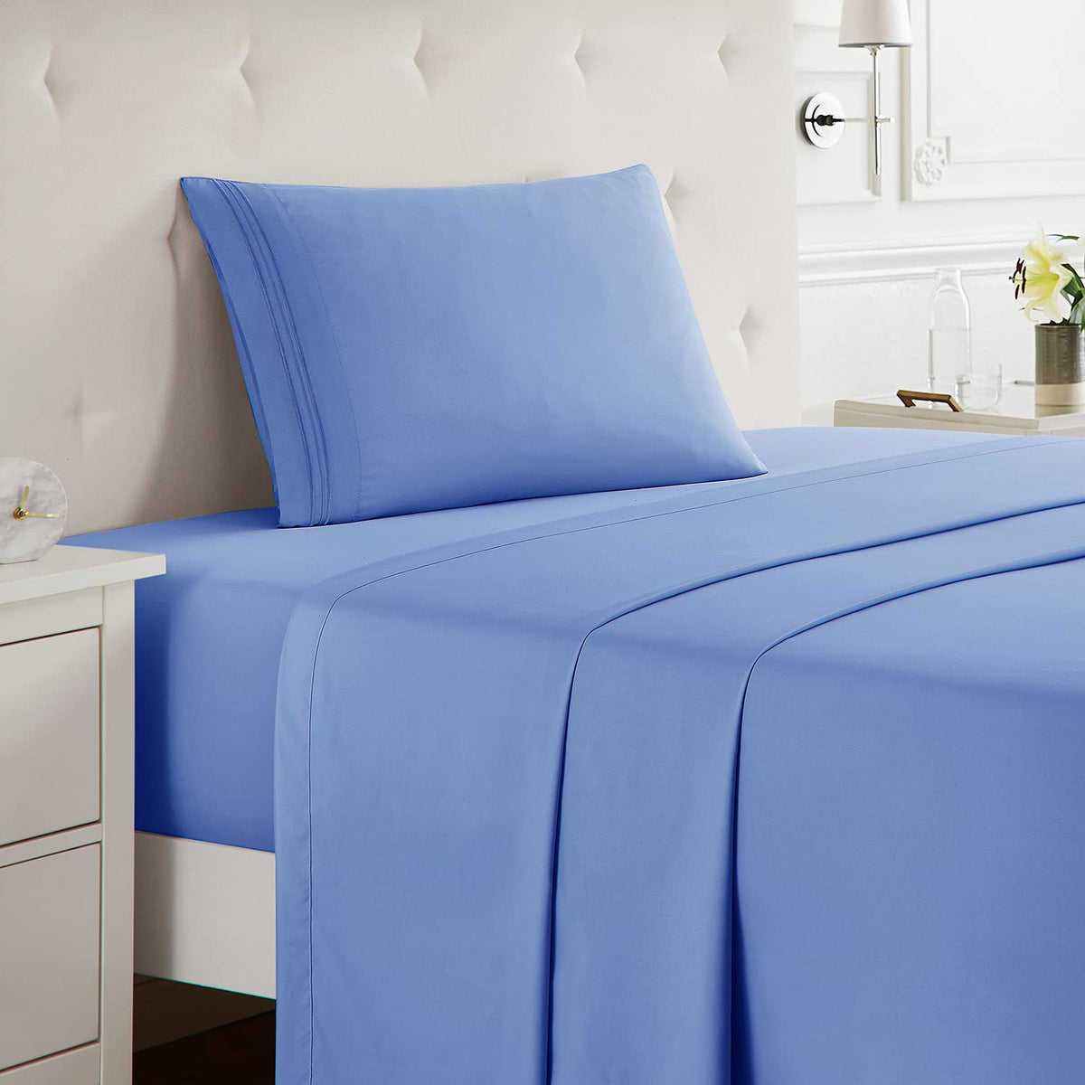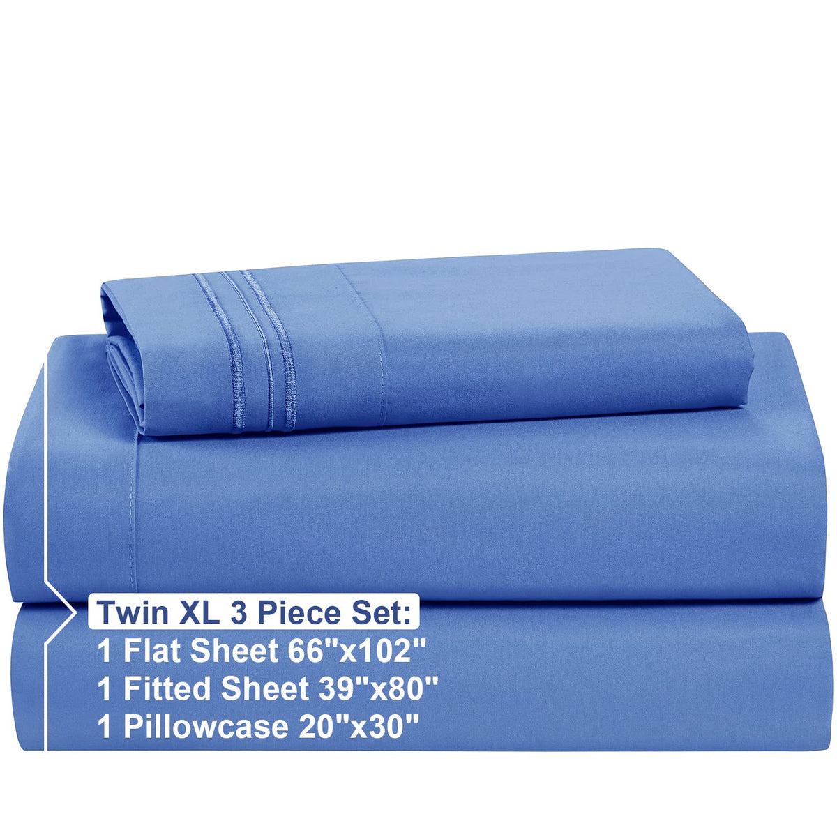 Nestl Bed Sheet Set, Twin Xl, 3 Piece, Deep Pocket, Hotel Luxury, Extra Soft, Breathable, Calm Blue