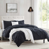 Nestl Black Duvet Cover Full Size - Pintuck Full Size Duvet Cover Set, 3 Piece Double Brushed Duvet Cover With Button Closure, 1