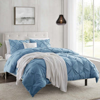 Nestl Blue Heaven Duvet Cover King Size - Pintuck King Duvet Cover Set, 3 Piece Double Brushed Duvet Cover With Button Closure,