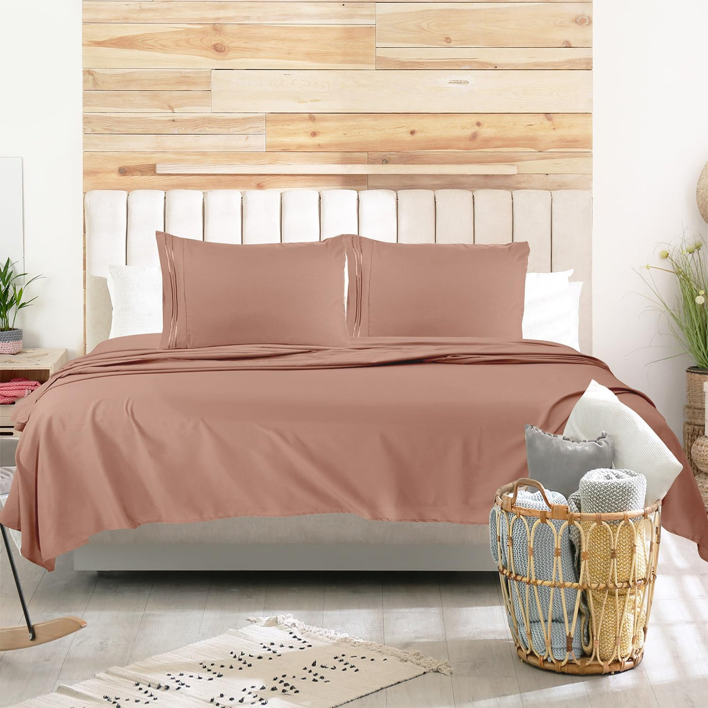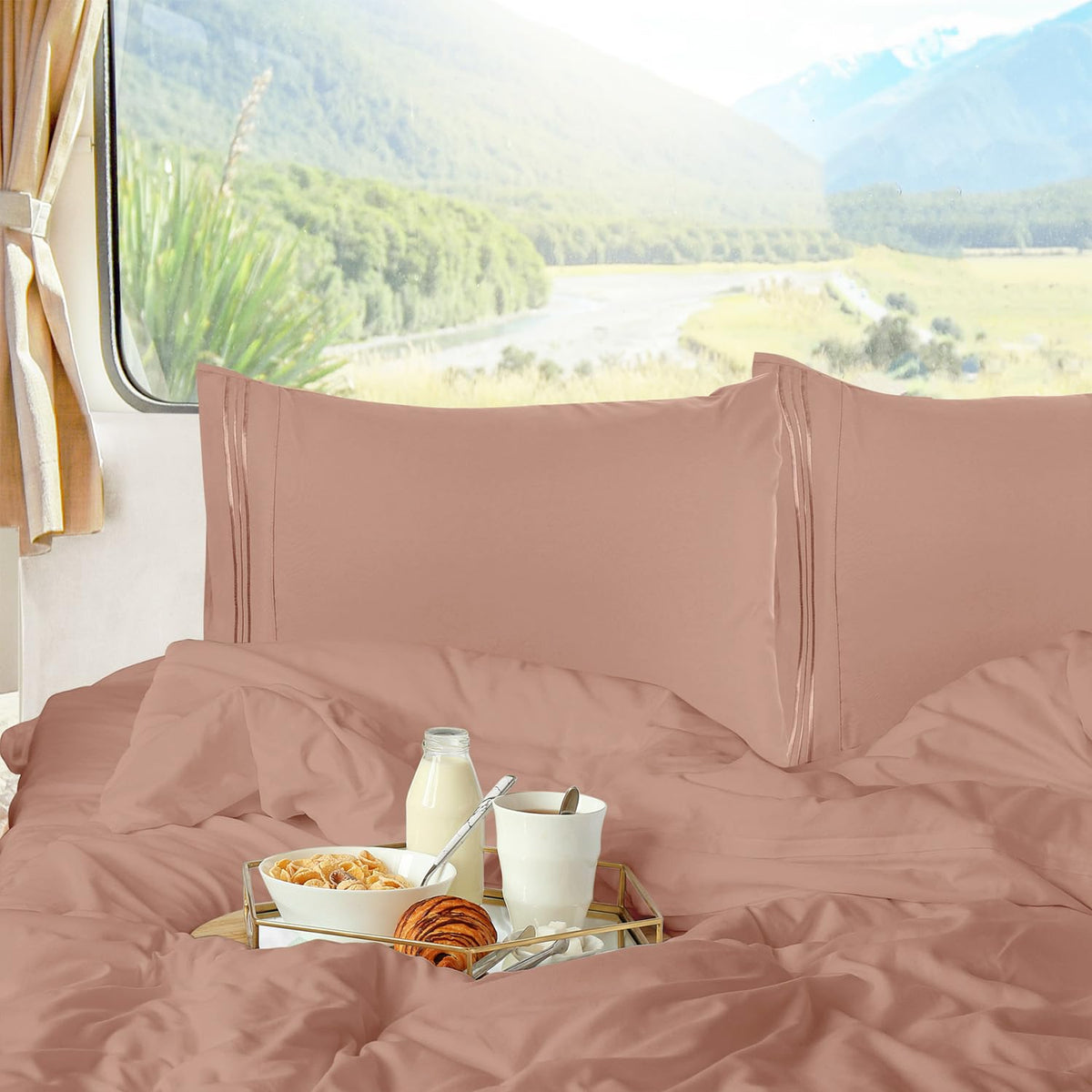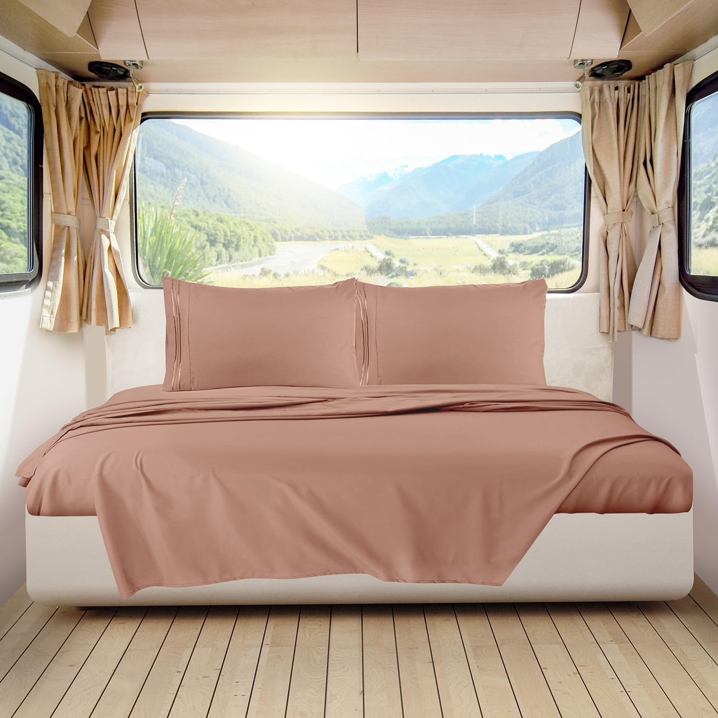 Nestl Blush Pink Rv Queen Sheets – Super Soft Rv Short Queen Sheets For Rv Camper, 4 Piece 1800 Microfiber Fitted Rv Sheets, Double Brushed Rv Bed Sheets Set, Camper Sheets And Pillowcases