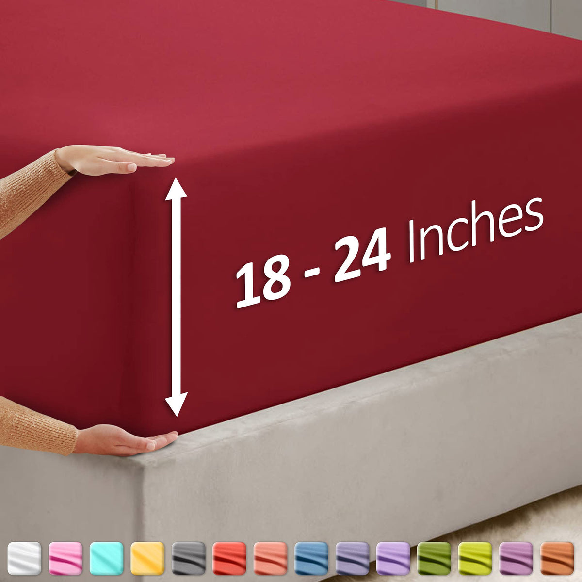 Nestl Extra Deep Pocket King Fitted Sheet, Burgundy Fitted Sheet King Size, 1800 Microfiber King Fitted Sheet Only, Soft King Bed Fitted Sheet Fits Up To 24 Inch Mattress - King Size Fitted Sheets