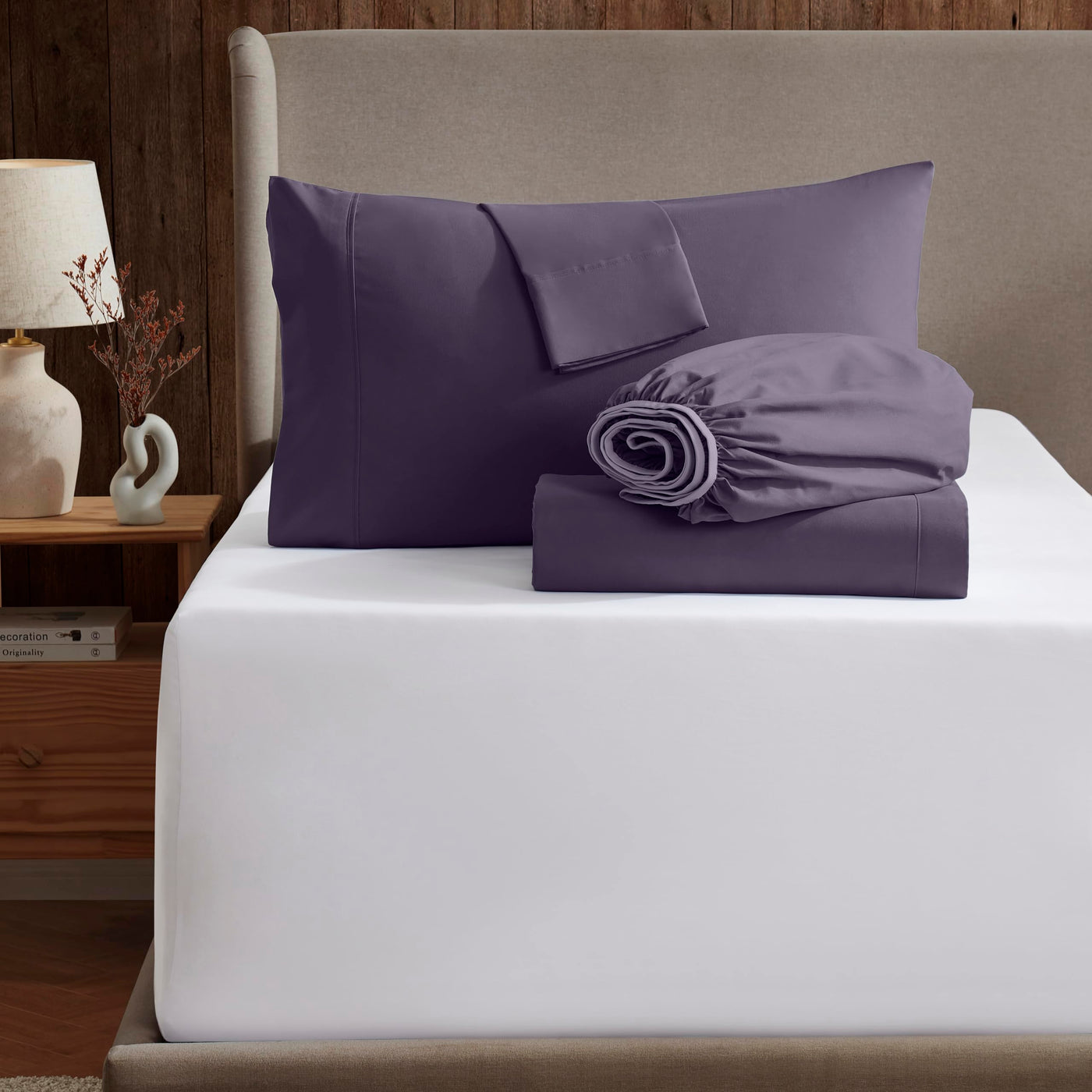 Nestl Extra Twin Deep Pocket Sheets Set - 4 Pc Soft Microfiber Twin Sheets Deep Pocket - Fade Resistant Bedding Sheets & Pillowcases - Twin, Eggplant Purple