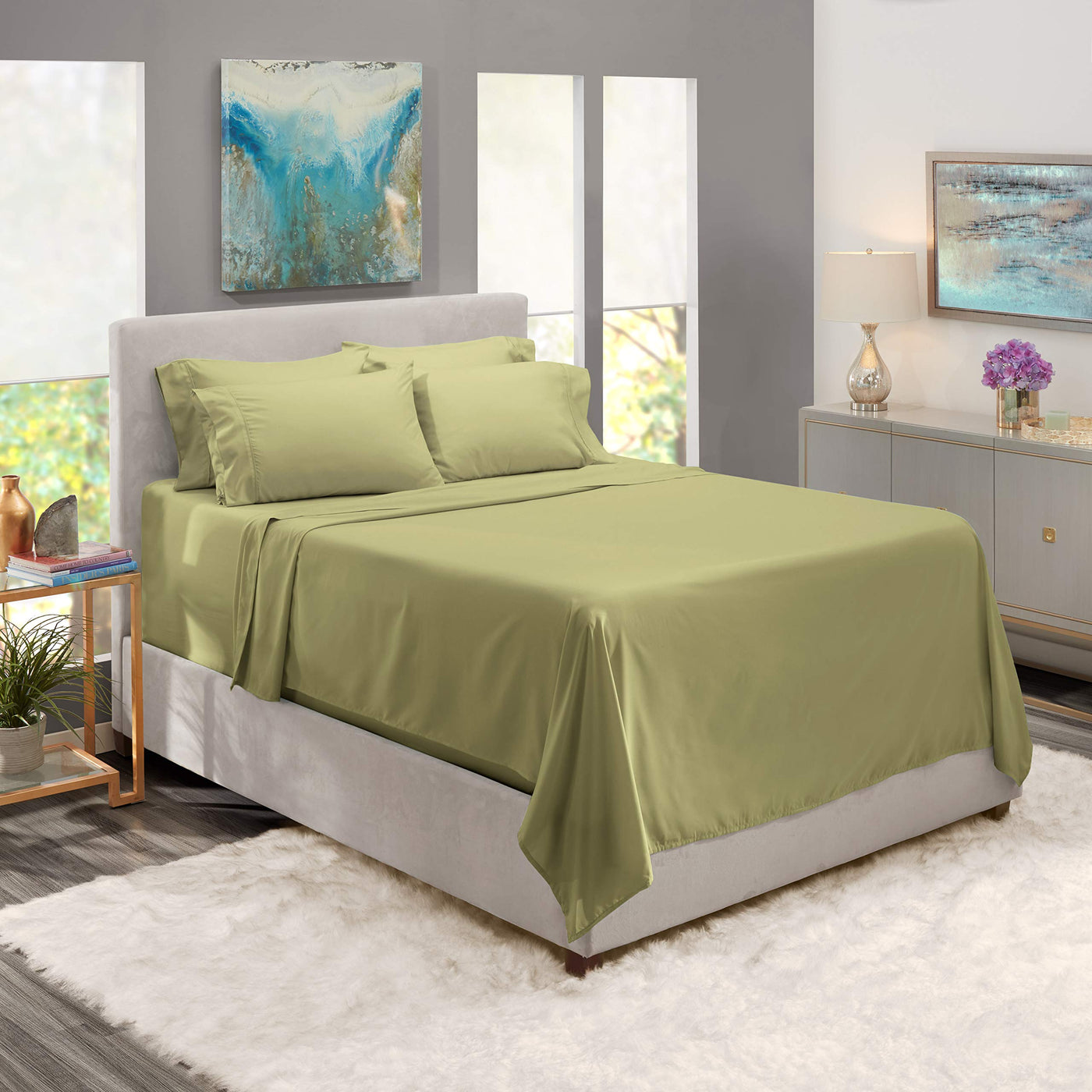 Nestl Extra Twin Deep Pocket Sheets Set - 4 Pc Soft Microfiber Twin Sheets Deep Pocket - Fade Resistant Bedding Sheets & Pillowcases - Twin, Sage Green