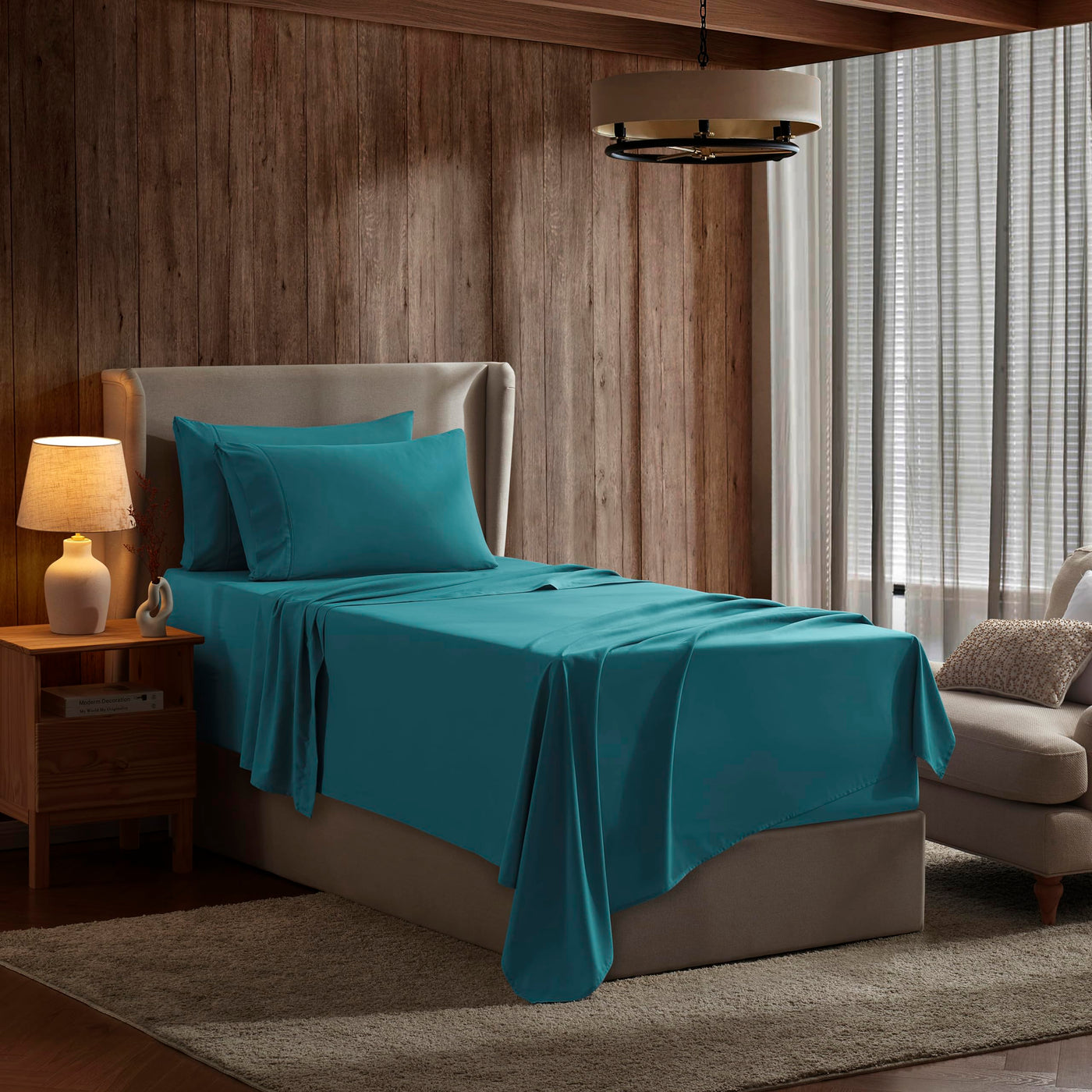Nestl Extra Twin Deep Pocket Sheets Set - 4 Pc Soft Microfiber Twin Sheets Deep Pocket - Fade Resistant Bedding Sheets & Pillowcases - Twin, Teal Blue/Green