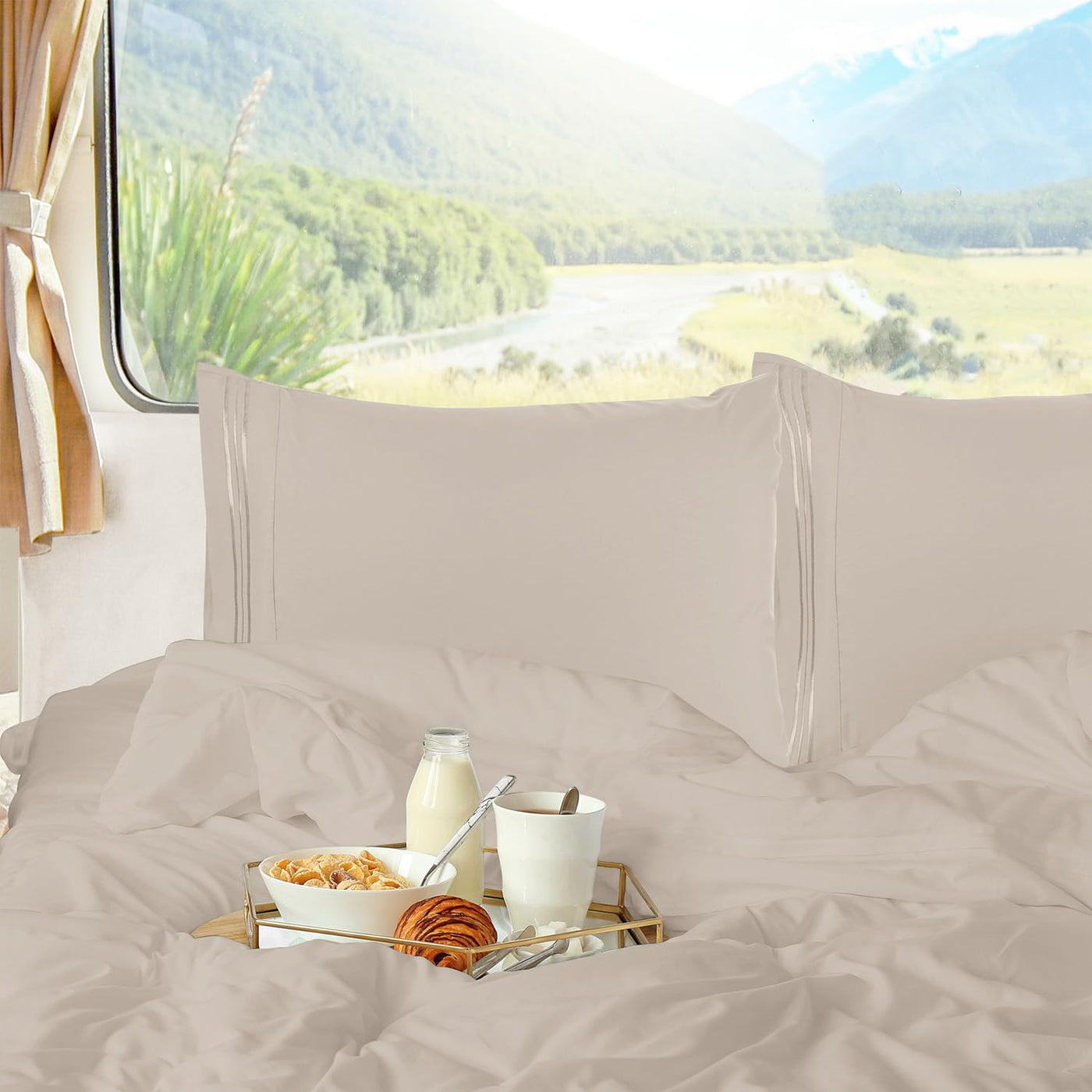 Nestl Linen Rv Queen Sheets – Super Soft Rv Short Queen Sheets For Rv Camper, 4 Piece 1800 Microfiber Fitted Rv Sheets, Double Brushed Rv Bed Sheets Set, Camper Sheets And Pillowcases