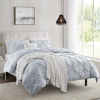 Nestl Twin Duvet Cover Set Pintuck - Double Brushed Steel Blue Duvet Cover Twin 2 Piece With Button Closure, 1 Pinch Pleated Twi