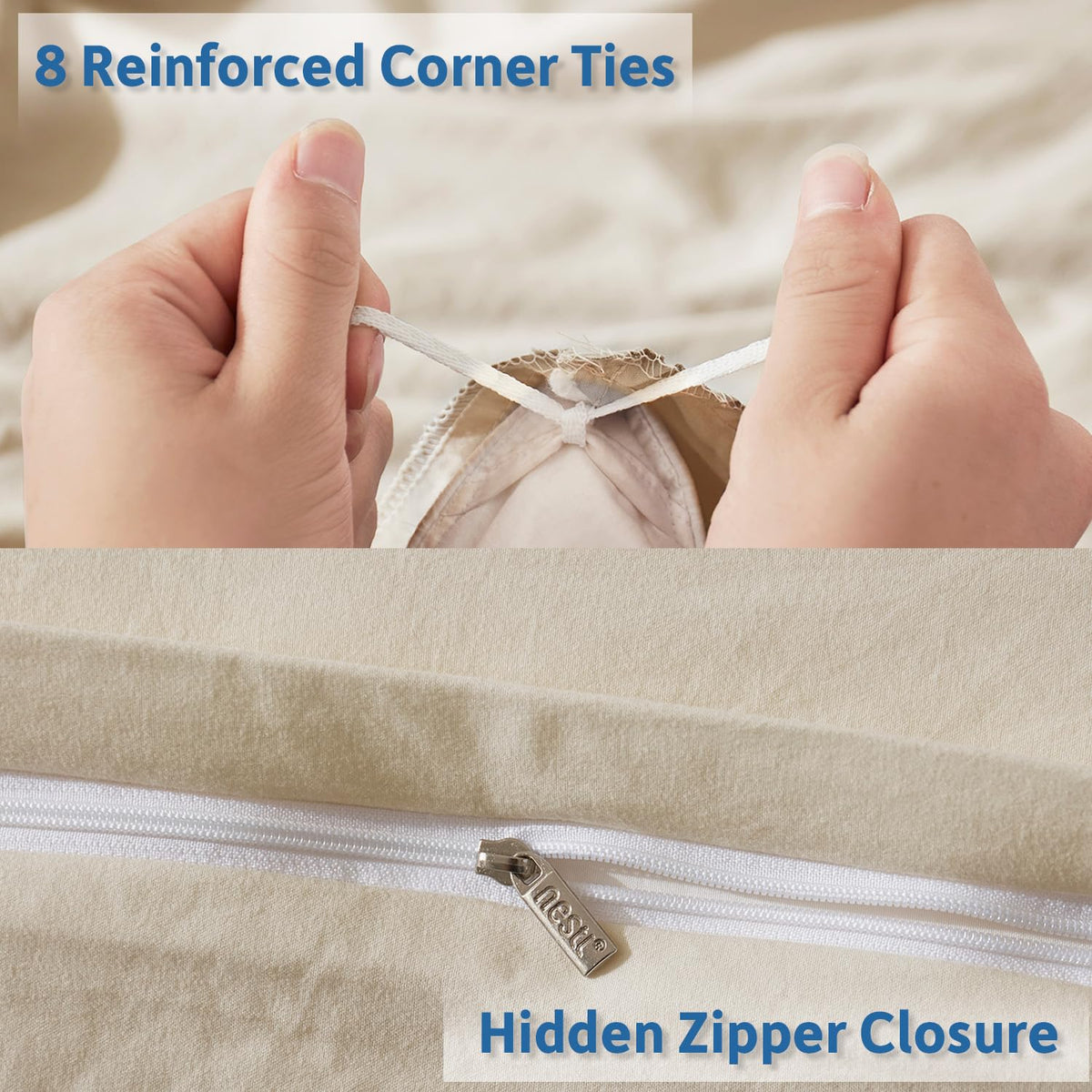 Nestl Twin Duvet Cover Set - Soft Prewashed Beige Cream Duvet Cover Twin/Twin Xl, 2 Piece, With Zipper Closure, 1 Duvet Cover 68X90 Inches And 1 Pillow Sham - No Comforter