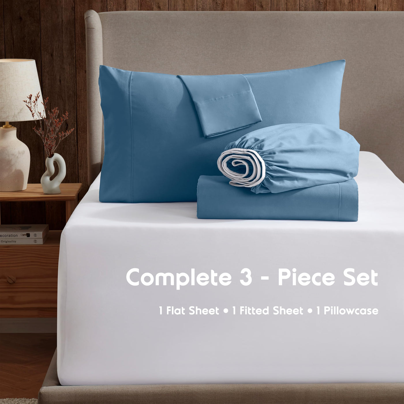 Nestl Twin Sheets Set - 3 Piece Twin Bed Sheets, Deep Pocket, Hotel Luxury, Extra Soft, Breathable And Cooling, Blue Heaven Sheets For Twin Size Mattresses