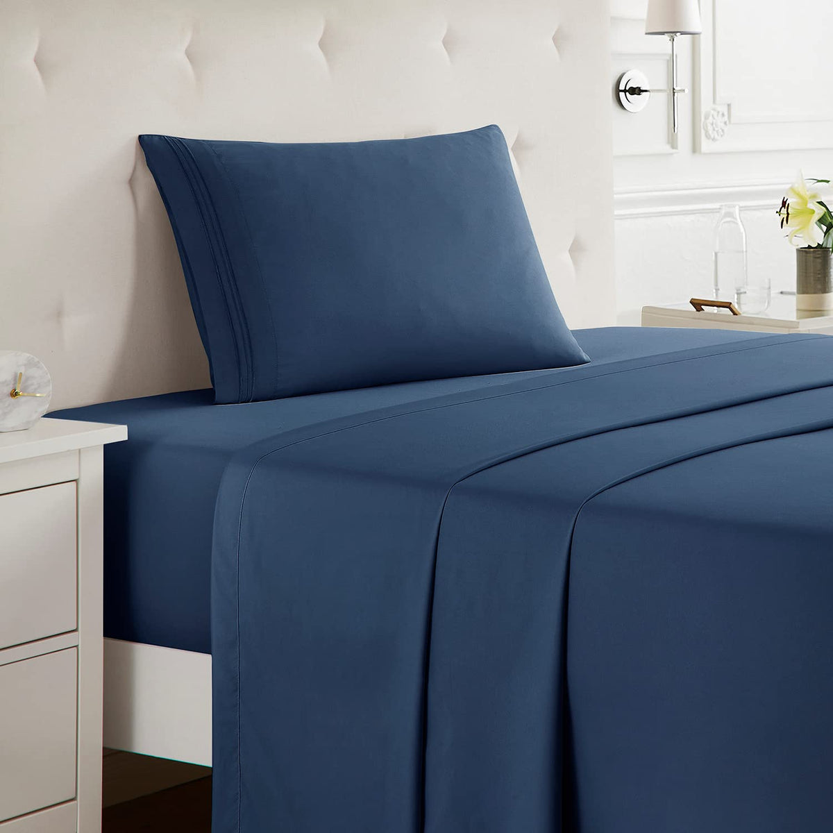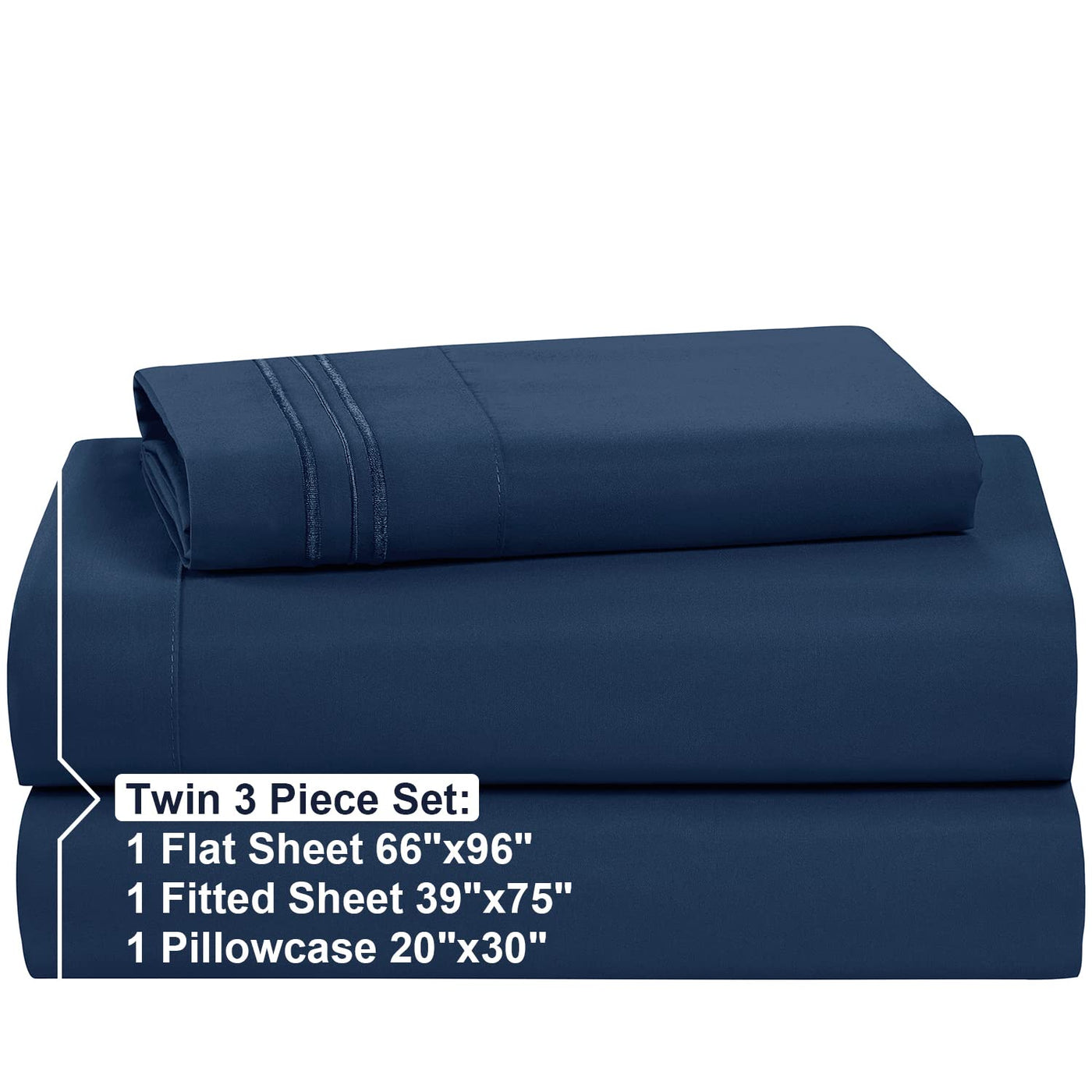 Nestl Twin Sheets Set - 3 Piece Twin Bed Sheets, Deep Pocket, Hotel Luxury, Extra Soft, Breathable And Cooling, Navy Blue Sheets For Twin Size Mattresses
