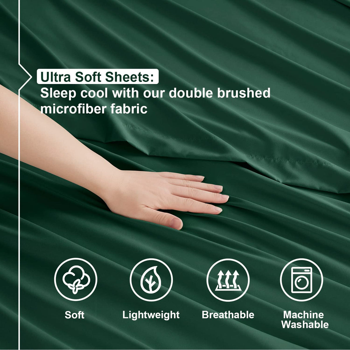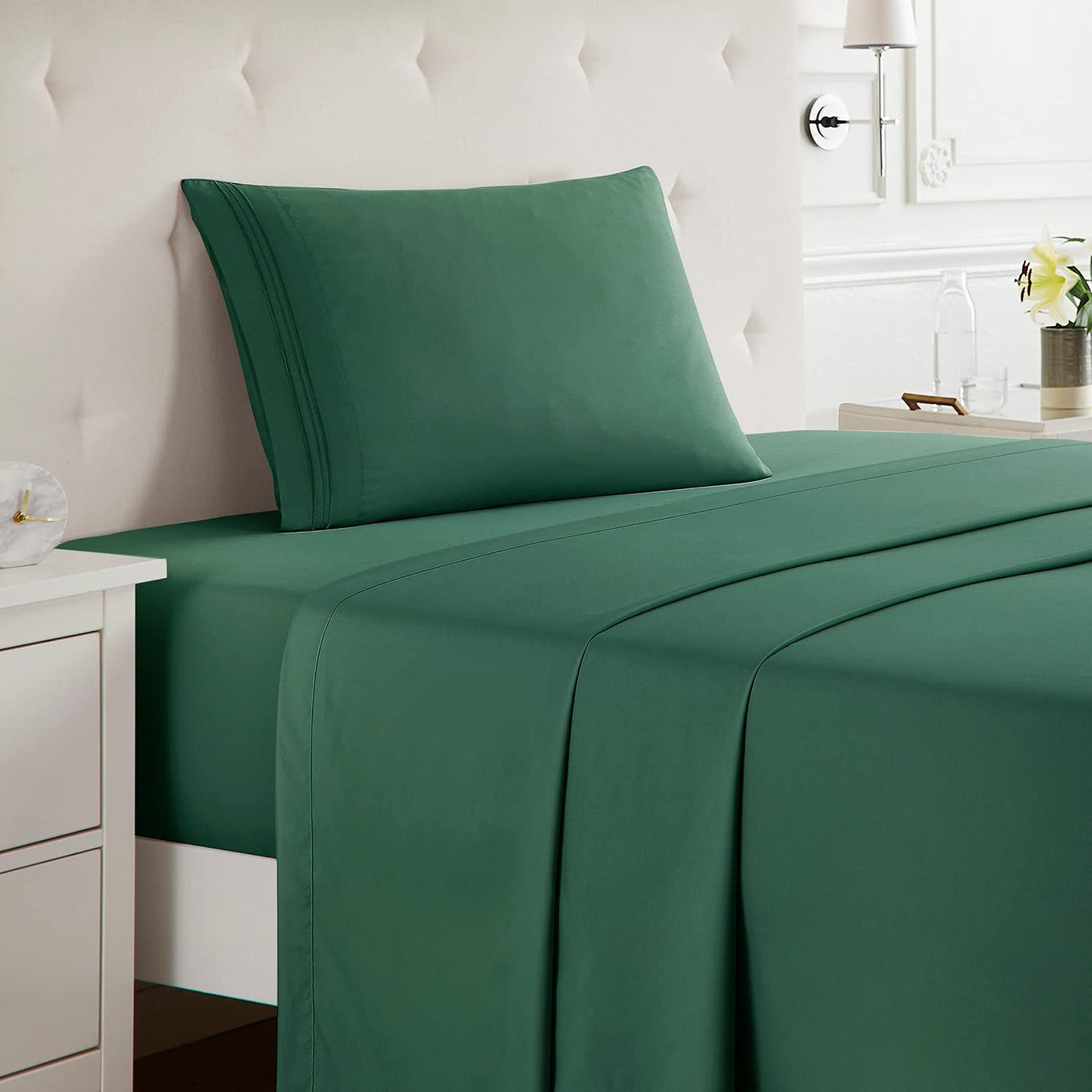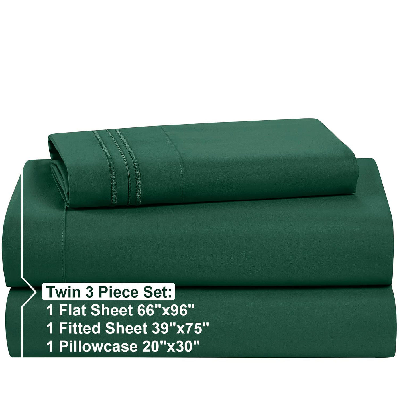 Nestl Twin Sheets Set - 3 Piece Twin Bed Sheets, Double Brushed Twin Sheet Set, Hotel Luxury Bed Sheets Twin Size, Extra Soft Dark Green Sheets, Twin Size Bed Set