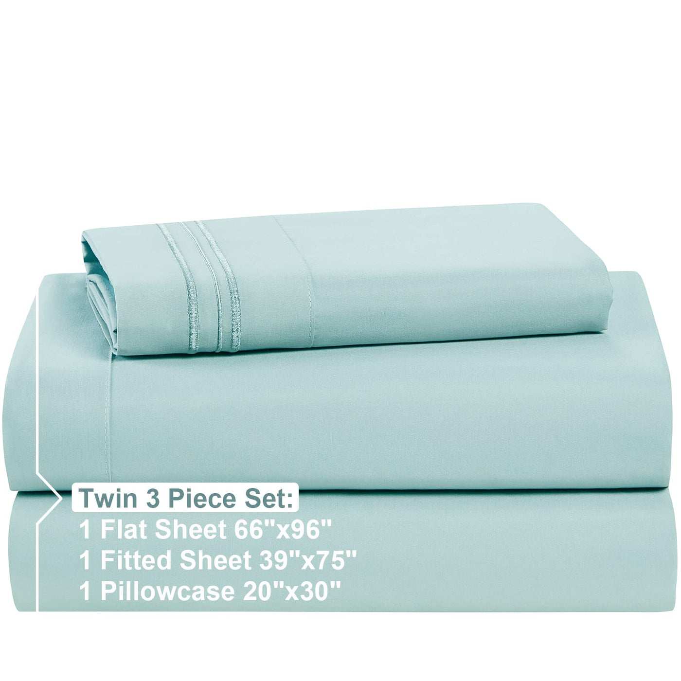 Nestl Twin Sheets Set - 3 Piece Twin Bed Sheets, Double Brushed Twin Sheet Set, Hotel Luxury Bed Sheets Twin Size, Extra Soft Light Blue Sheets, Twin Size Bed Set