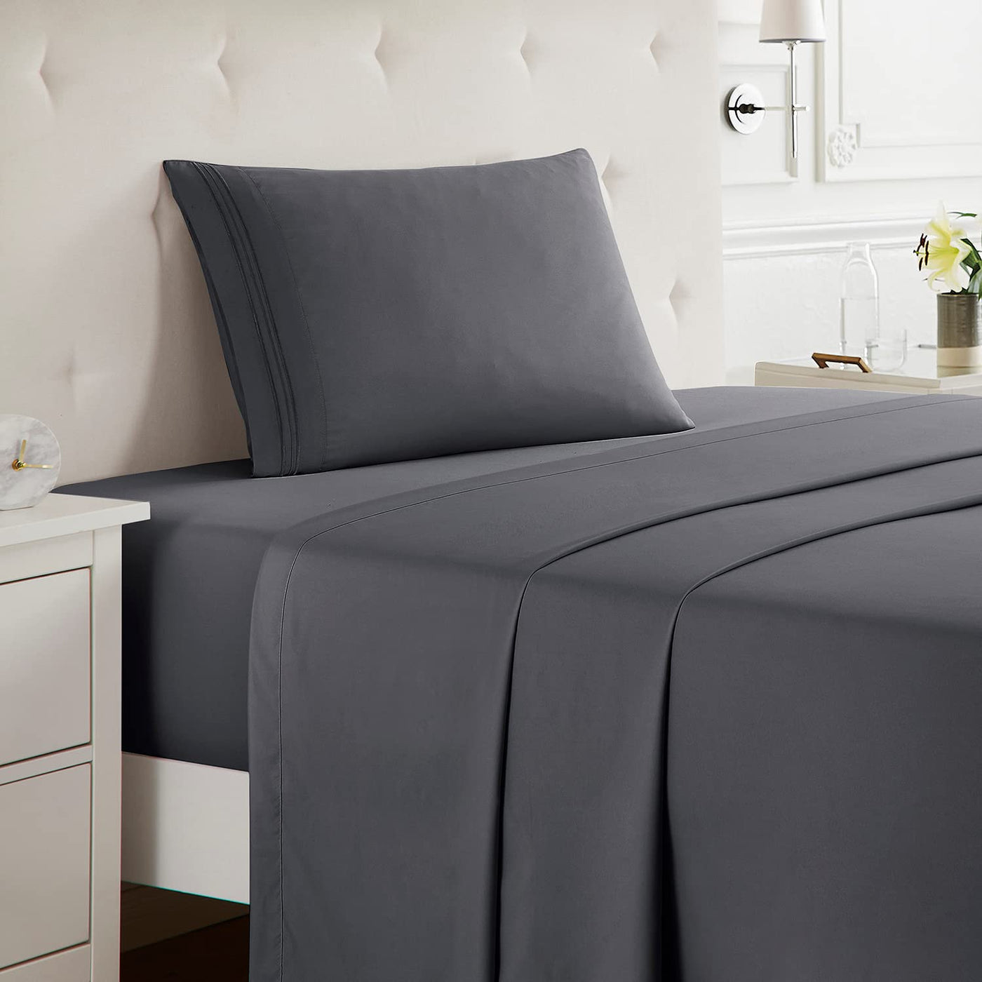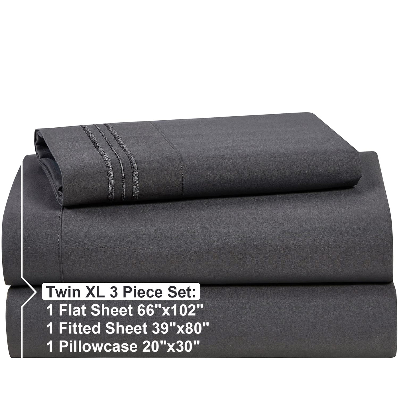 Nestl Twin Xl Sheets Set - 3 Piece Twin Xl Bed Sheets, Deep Pocket, Hotel Luxury, Extra Soft, Breathable And Cooling, Dark Grey Twin Xl Sheet Set