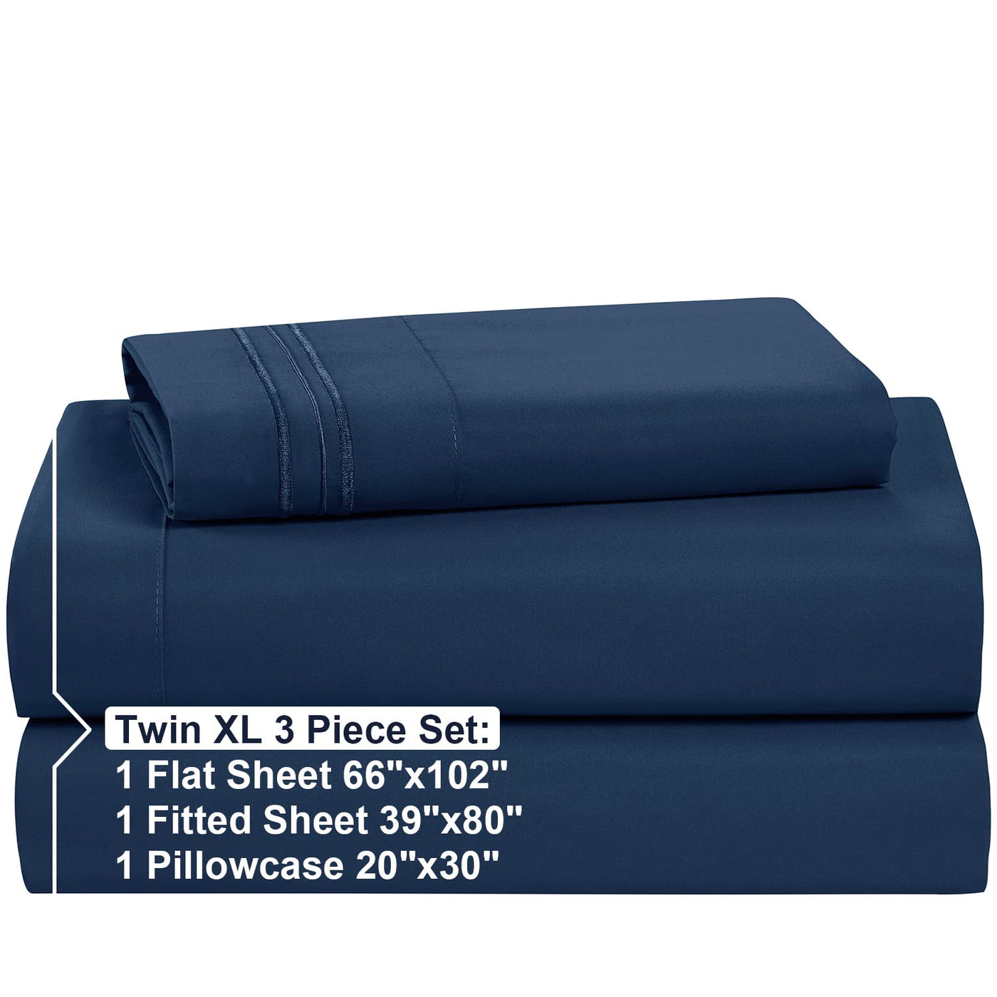 Nestl Twin Xl Sheets Set - 3 Piece Twin Xl Bed Sheets, Deep Pocket, Hotel Luxury, Extra Soft, Breathable And Cooling, Navy Blue Twin Xl Sheet Set