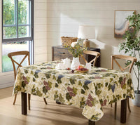 Newbridge Designed This Contemporary Grape Print Vinyl Tablecloth Favorite For Your Next Party, Barbeque, Picnic Or Busy Home Or Restaurant. Newbridge Grapevine Vinyl Flannel Backed Tablecloths Features A Vibrant Allover Medium Format Printed Grape Tableau With A Subtle Visual Texture On A Creamy Leaf Patterned Background. Bold Grapes Are Depicted In Rose, Green, Purple And Lavender With Sage Green Leaves And Script Naming The Different Varieties. The Newbridge Grapevine Vinyl Flannel Backed Tablecloth Is Designed To Be A Favorite For Your Busy Home Or Restaurant Designed On Premium Gauge Vinyl With A Polyester Flannel Backing. Great Vinyl Flannel Backed Tablecloth For Use With Adults And Children For At Home Or In Commercial Setting That Are Either Indoor Or Outdoor. Great For Spring And Summer Entertaining For Easter, Memorial Day, Mothers Day, 4Th Of July, Labor Day And Beach And Summer Themed Dinner Parties. Perfect For Decorating And Keeping Your Table Protected From Everyday Accidents. Like Plastic, The Easy-Care Vinyl Surface Can Be Wiped Clean With A Damp Cloth Or Sponge. Vinyl Top Layer Adds A Protective Waterproof Layer. Flannel Backed To Reduce Skidding And Slipping On Most Surfaces. Finished With Sewn Edges. Easy To Fold And Store When Not In Use. Great For Indoor And Outdoor, Home, And Commercial Use Alike. Great For Indoor And Outdoor Entertaining, Barbeques, Dining, Parties, Picnics, Restaurants And Cafeterias - Easy Care - Wipe Clean - No Laundering.