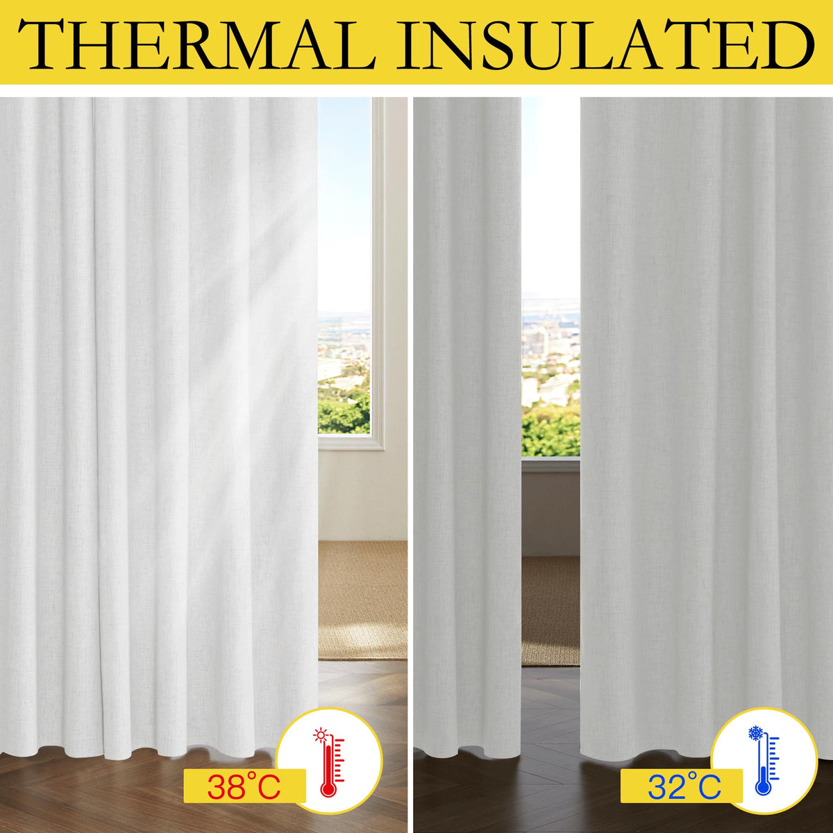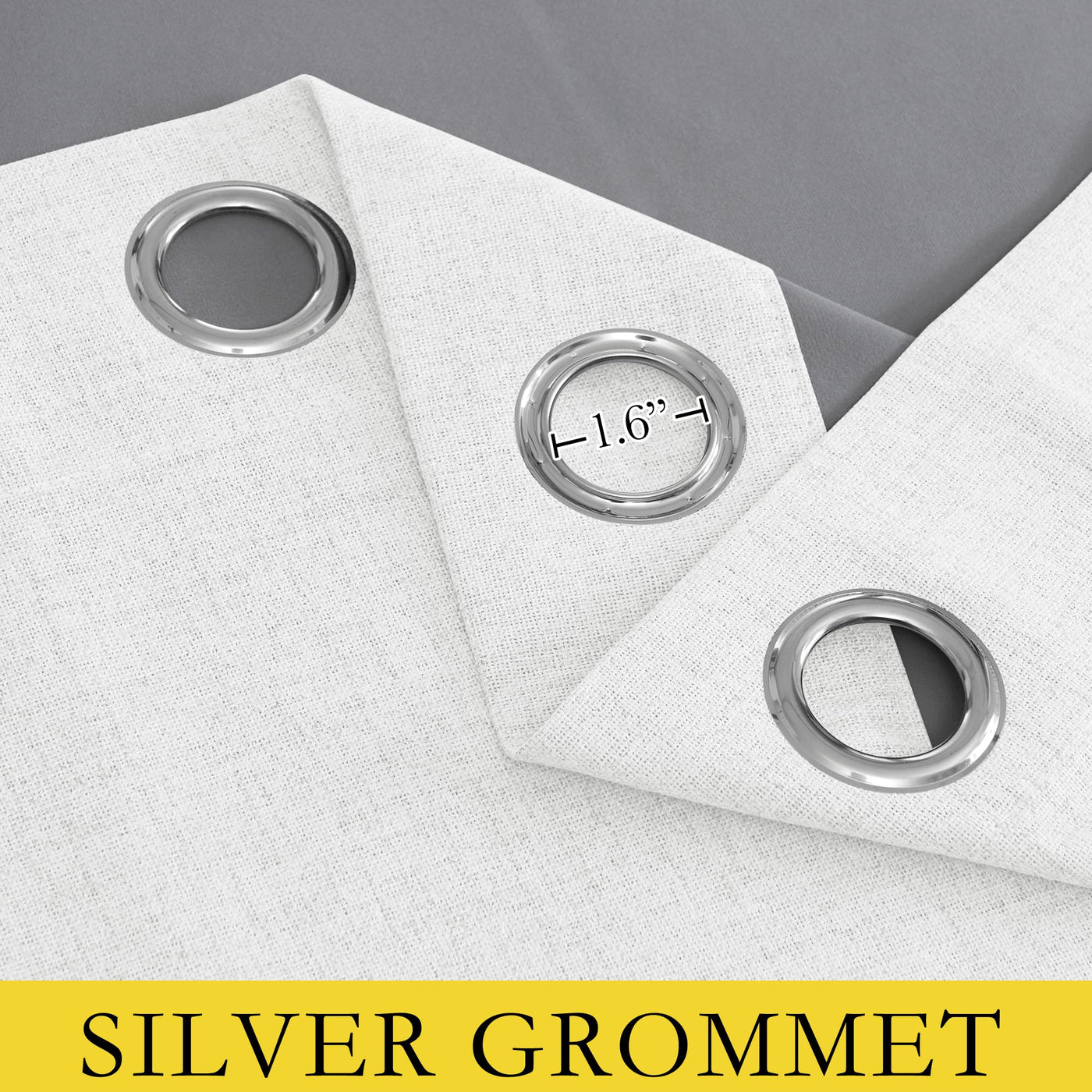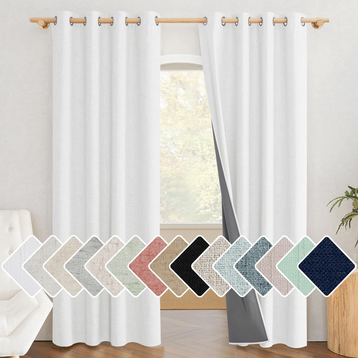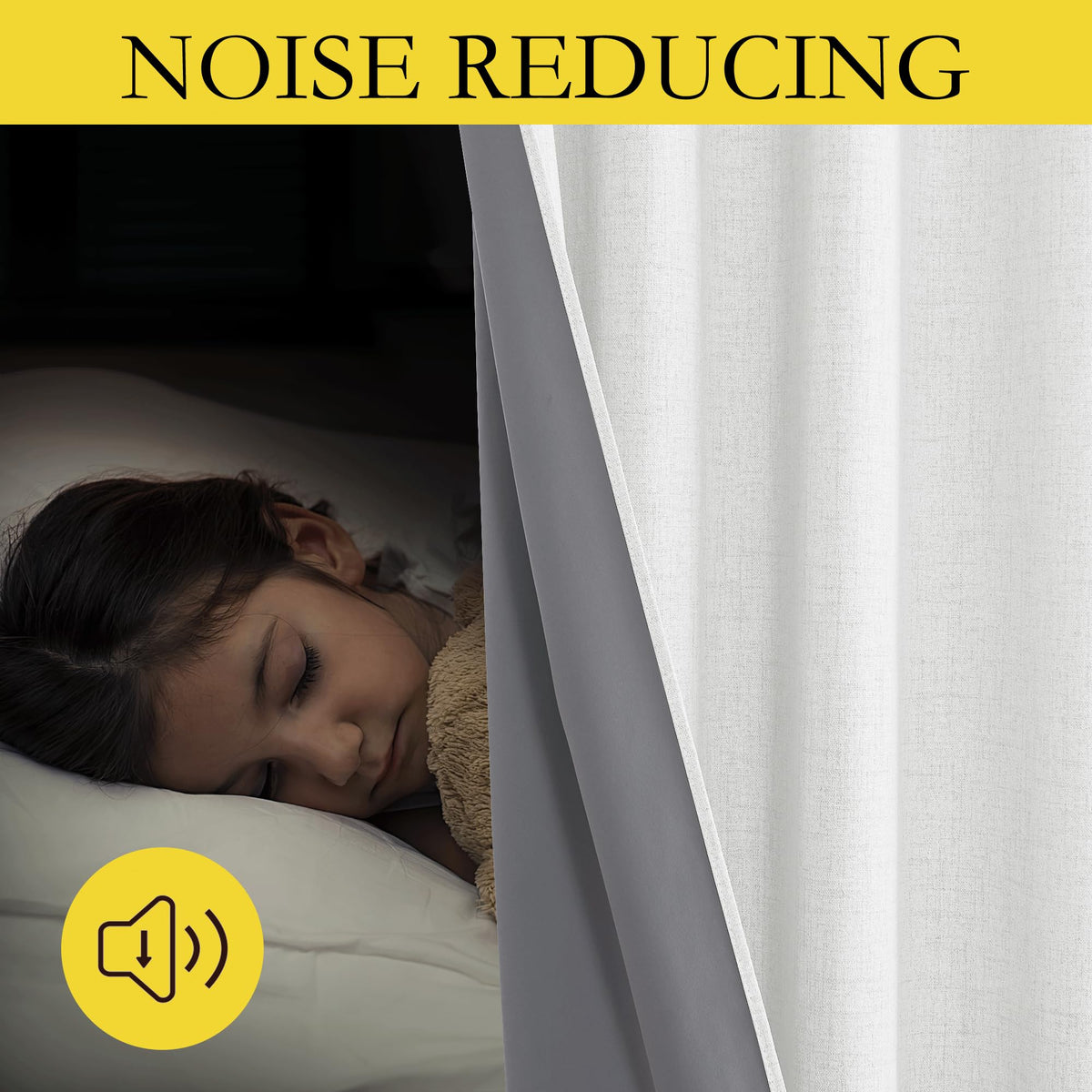 Nicetown 100% Absolutely Blackout Linen Curtains With Thermal Insulated Grey Liner, Greyish White, 52 Inches Wide, 84 Inches Length Energy Saving Curtains For Living Room 2 Panels Set, Vertical Blinds