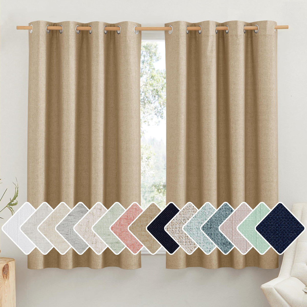 Nicetown 100% Absolutely Blackout Linen Curtains With Thermal Insulated White Liner, Camel, 52' Wide By 63' Long, 2 Pieces, Linen Blend Window Drapes Privacy Window Treatments For Bedroom/Kids Room