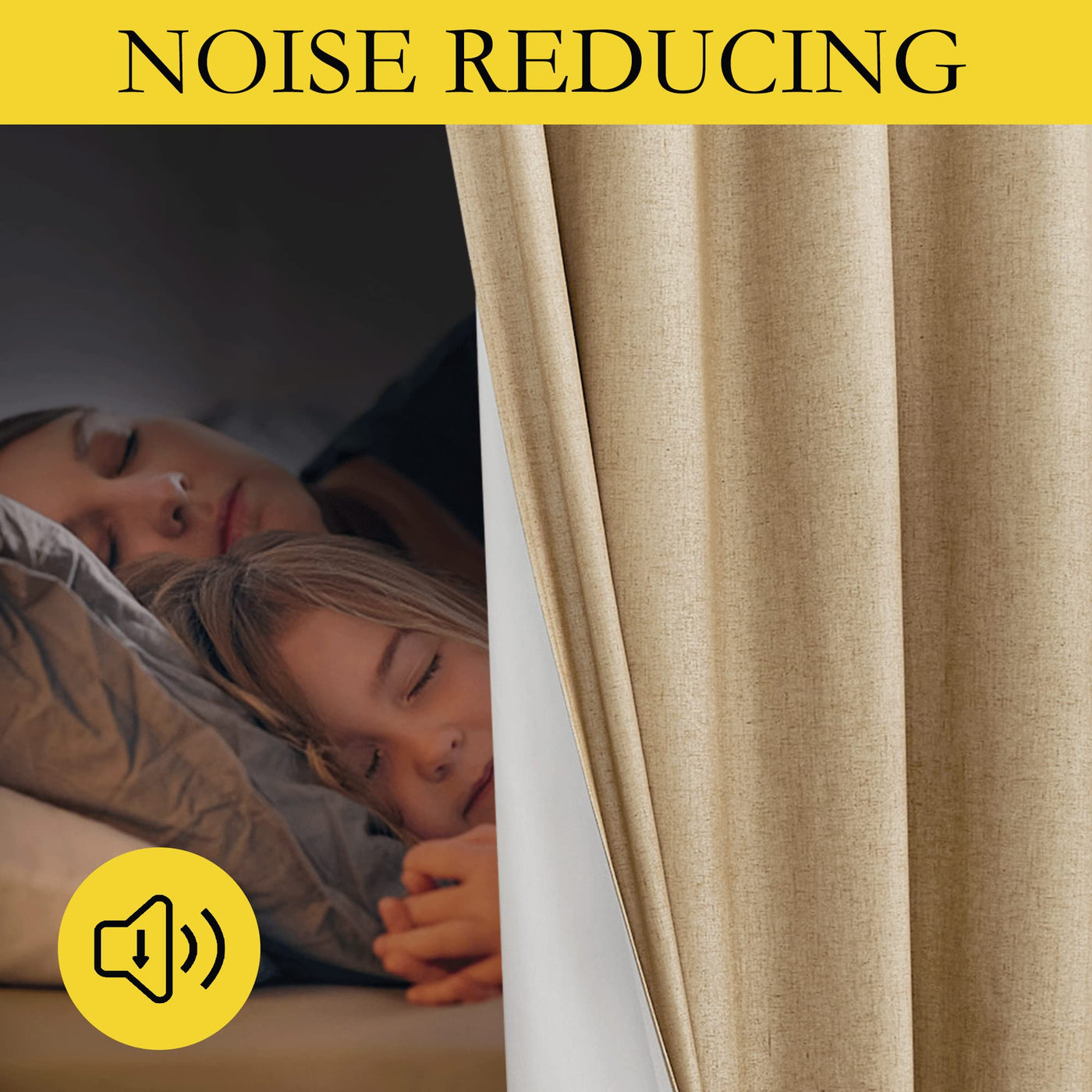 Nicetown 100% Absolutely Blackout Linen Curtains With Thermal Insulated White Liner, Camel, W52 X L102, 2 Panels, Textured Linen Look Noise Reducing Window Treatments Drapes For Bedroom/Living Room
