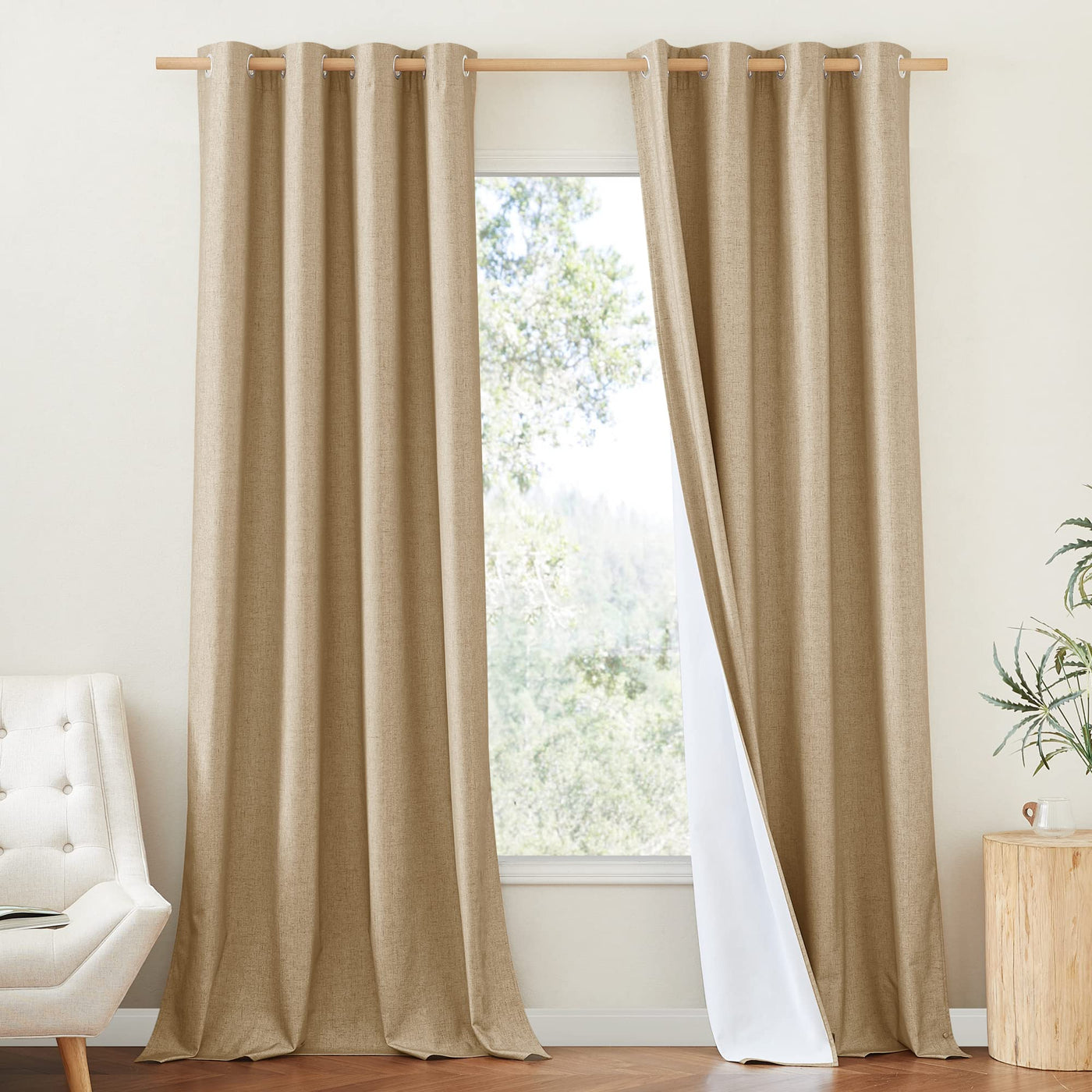 Nicetown 100% Absolutely Blackout Linen Curtains With Thermal Insulated White Liner, Camel, W52 X L90, 2 Panels, Textured Linen Look Noise Reducing Window Treatments Drapes For Bedroom/Living Room