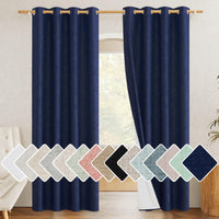 Nicetown 100% Absolutely Blackout Linen Curtains With Thermal Insulated White Liner, Dark Blue, 52' Wide, 2 Pieces, Privacy Vertical Window Drapes For Office Laundry Living Room Windows 84 Inch Long
