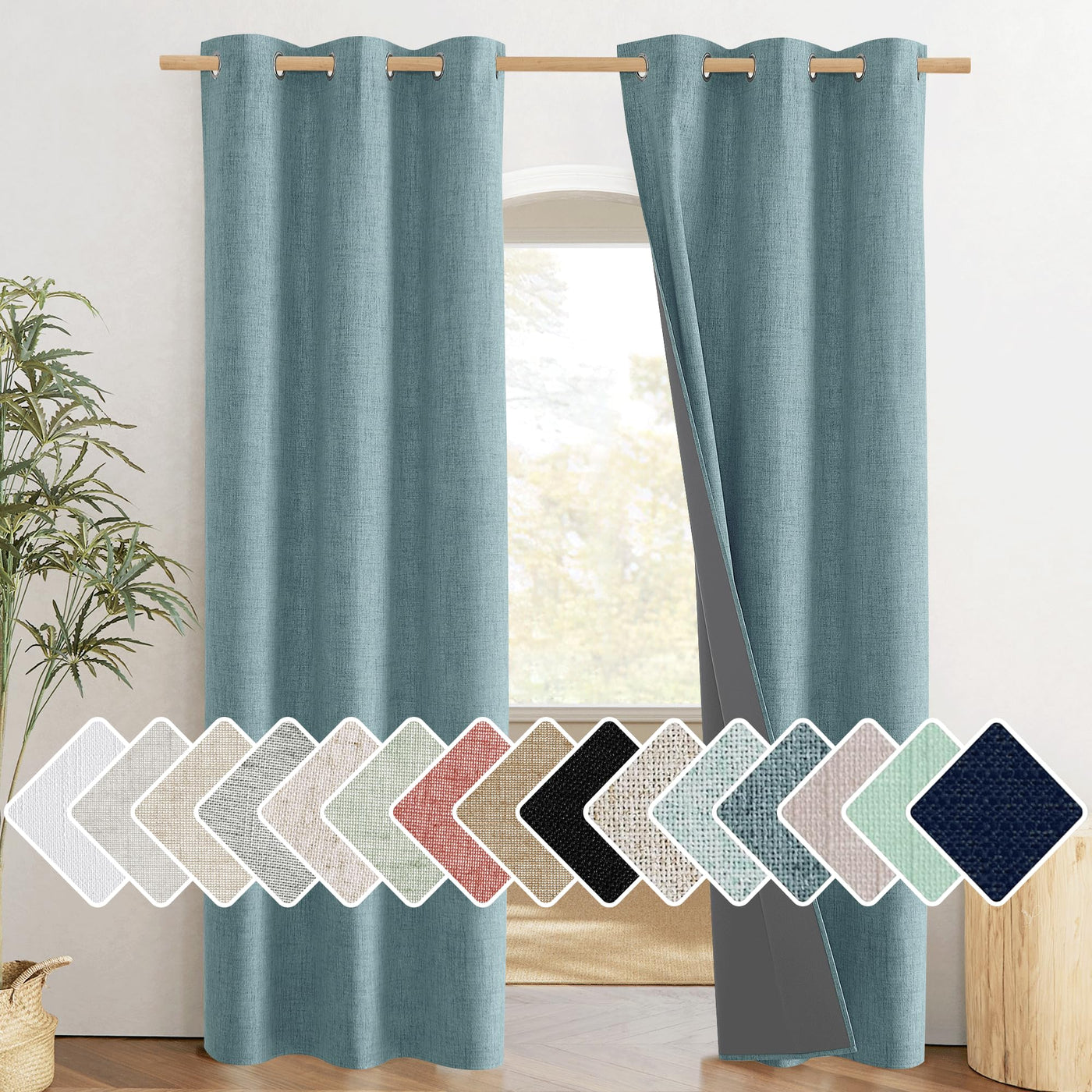 Nicetown 100% Absolutely Blackout Linen Curtains With Thermal Insulated White Liner, Skylark Blue, 42 Inches Wide, 84 Inches Len