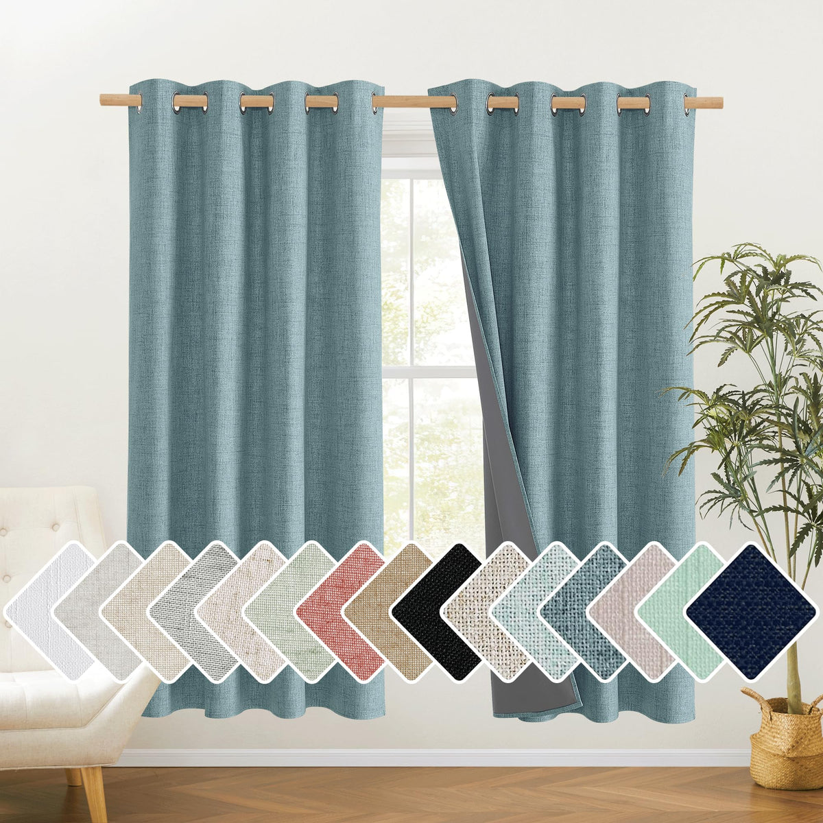 Nicetown 100% Absolutely Blackout Linen Curtains With Thermal Insulated White Liner, Skylark Blue, 52 Inches Wide, 72 Inches Length Energy Saving Curtains For Living Room 2 Panels Set, Vertical Blinds