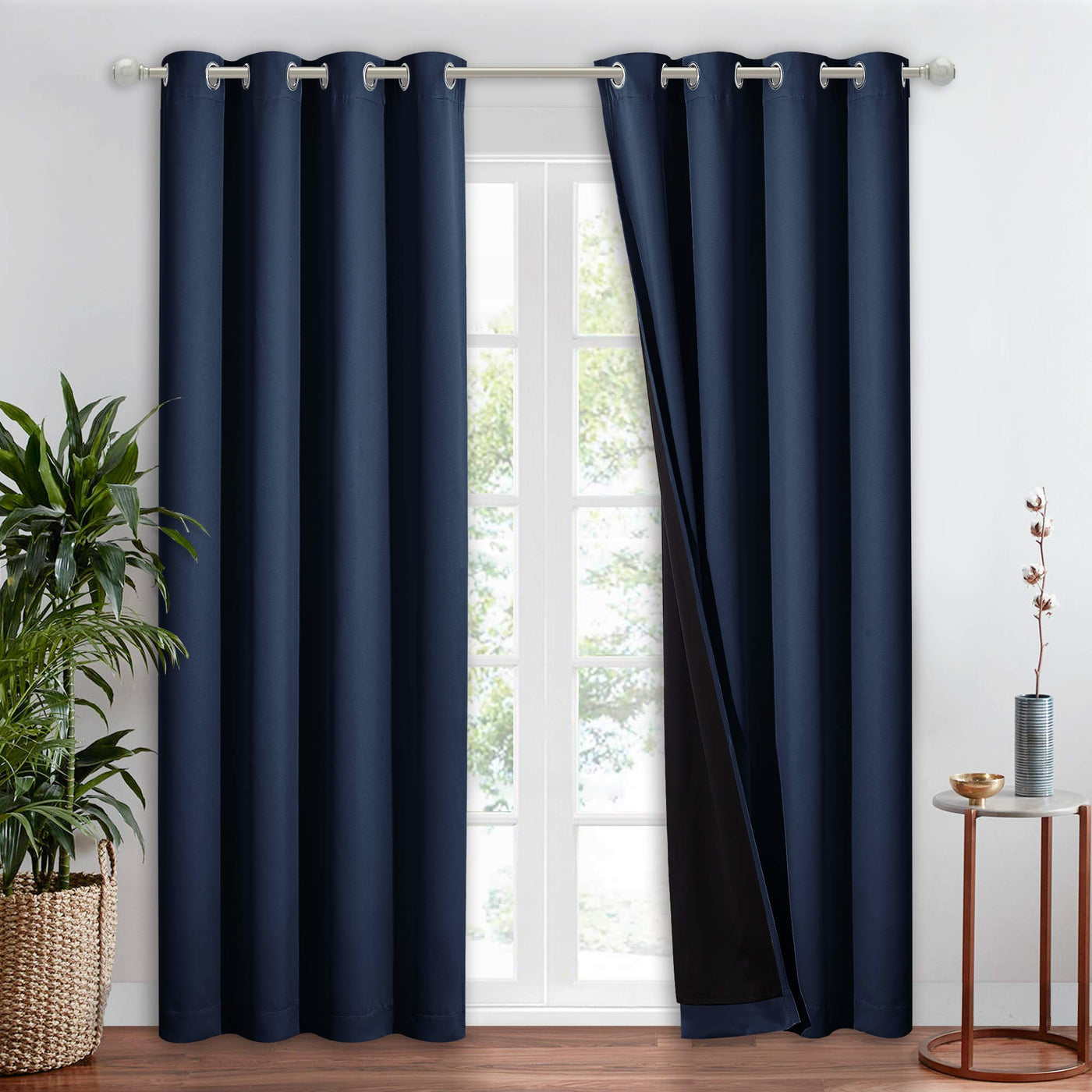 No Matter Where You Live, California, Texas Or Even Florida, If You Have The Annoying Sunshine Of Torture, And Need A Completely Dark Sleep Environment, You Can Choose Our Curtains - 2 Layers Lined Curtains. No Matter How Strong The Unwanted Light Was, You Can Have A Good Sleep.Different From Other Regular One Layer Blackout Curtains, Nicetown Thermal Insulated Blackout Lined Curtains Go Beyond That Mundane Function And Provide The Best Benefits.Fit Nicely:Package Includes A Panel Blackout Drape With Black Liner Backing. 1.6' Grommet Fits Various Standard Or Decorative Curtain Rod/Pole.Due To Grommet Design, Remember They Narrow When You Put Them On A Pole. Become Shorter Because Of Sewn Into A 3-Inch Header With Grommets.Particularly Suitable: Living Room, Kitchen, Bedroom, Baby Room, Villa, Hall, And Department, Etc.Multifunction:Lined Draperies Are Thick Enough To Blocks Out Unwanted Light Completely And Noise, Encouraging Day Sleepers And The Ones Who Have Trouble Falling Asleep Have A Good Sleep.Not Only That But Also Make Your Resting Zone Truly Blissful. They Would Be Perfect For Any Home Theater And Supply You With The Enjoyment Of Watching Tv In Real Darkness. The Sophisticated Designs Allow You To Brighten Your Home Decor, Making Your Living Space More Lively. Protect Your Furniture, Floors, And Artwork From The Ravages Of The Sun.Lined Grommet Curtains Have Kept The Room Much Warmer In Winter And Also Block A Lot Of Heat During Summer, Relieving The Strain On Home Heating And Cooling While Reducing Energy Budget.Tips:Machine Washable, Recommended Hand Wash Or Dry Cleaning. Wash The Water Temperature Below 86?.Advocate For The Use Of Flexible Detergents, No Bleaching. Low-Temperature Ironing If Necessary.Note: Due To Different Screen Displays, The Color Of The Actual Item May Vary Slightly From The Above Images.