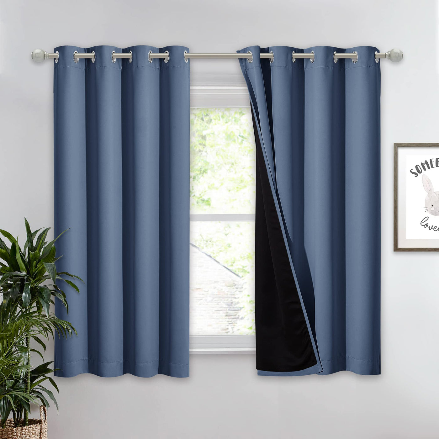 Nicetown 100% Blackout Curtain With Black Liner, Thermal Insulated 2-Layer Lined Drape, Room Warming Small Window Drapery For Di